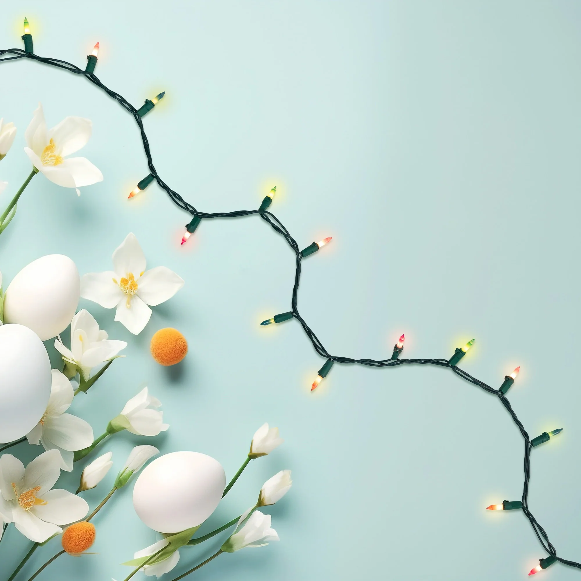 Mini Easter Light Set - Pastel Multi-Color - 7' Green Wire - 35ct
