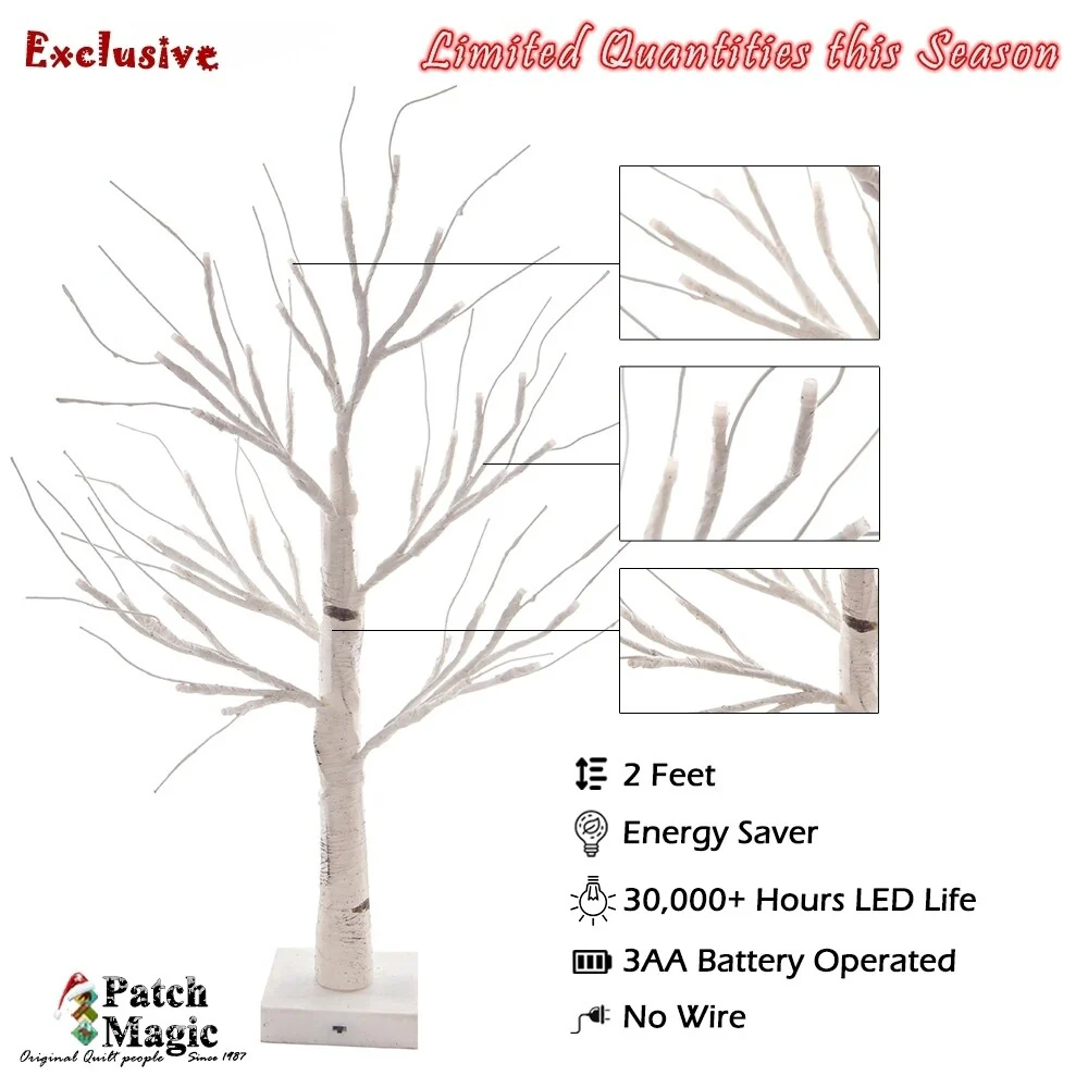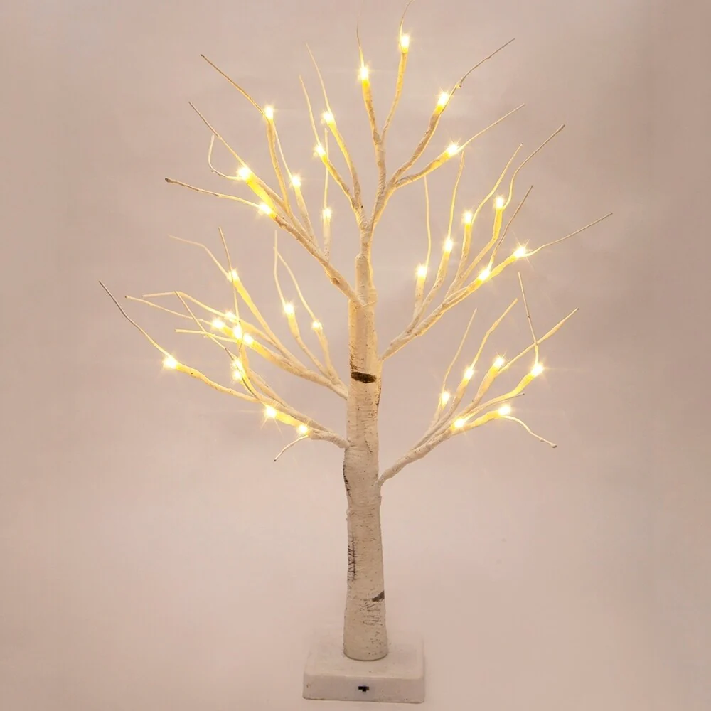 2-Ft Prelit Christmas tree, Birch LED lighted tree with 36 Lights - N/A