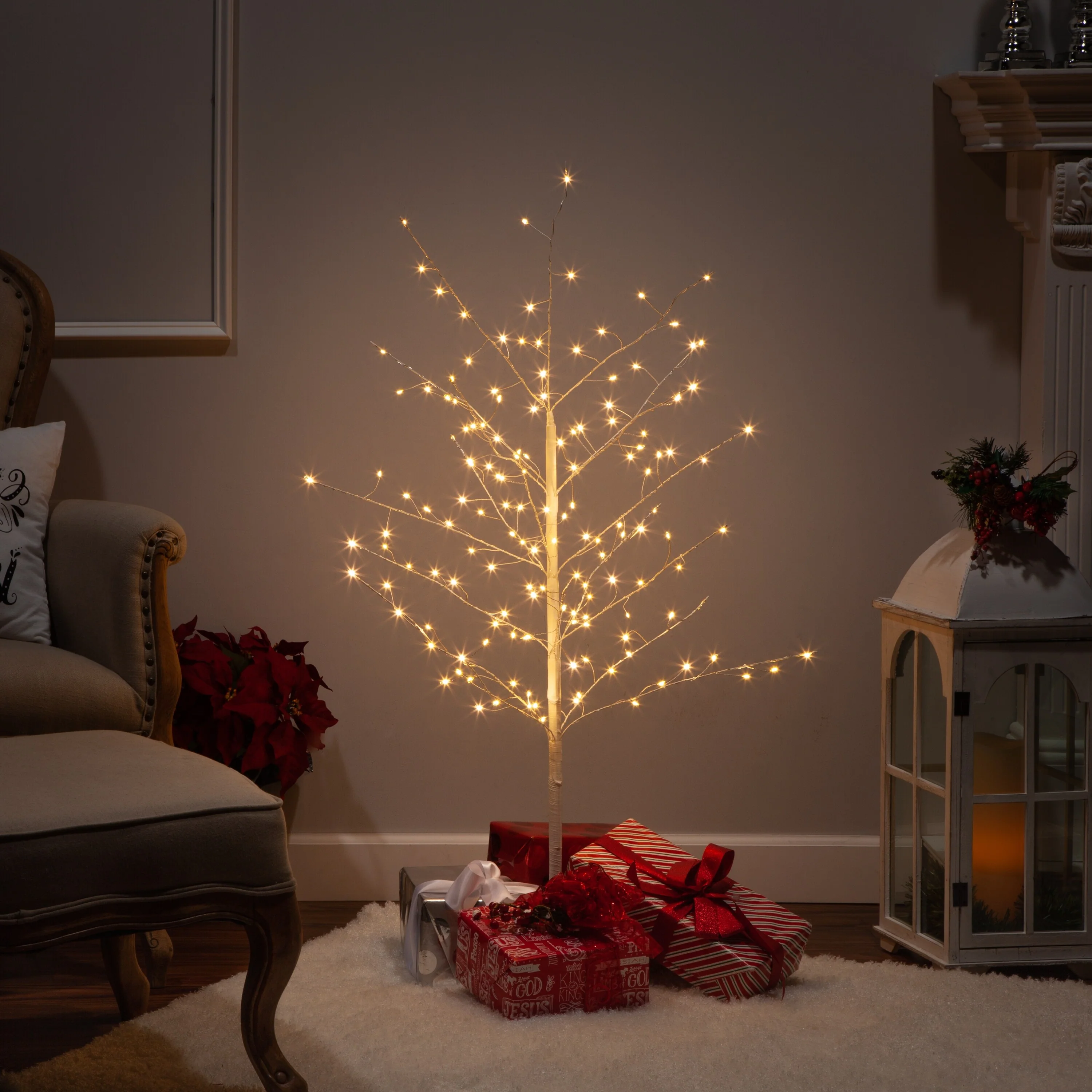 Vickerman 3' White Birch Twig Tree, Warm White 3mm Wide Angle LED lights.