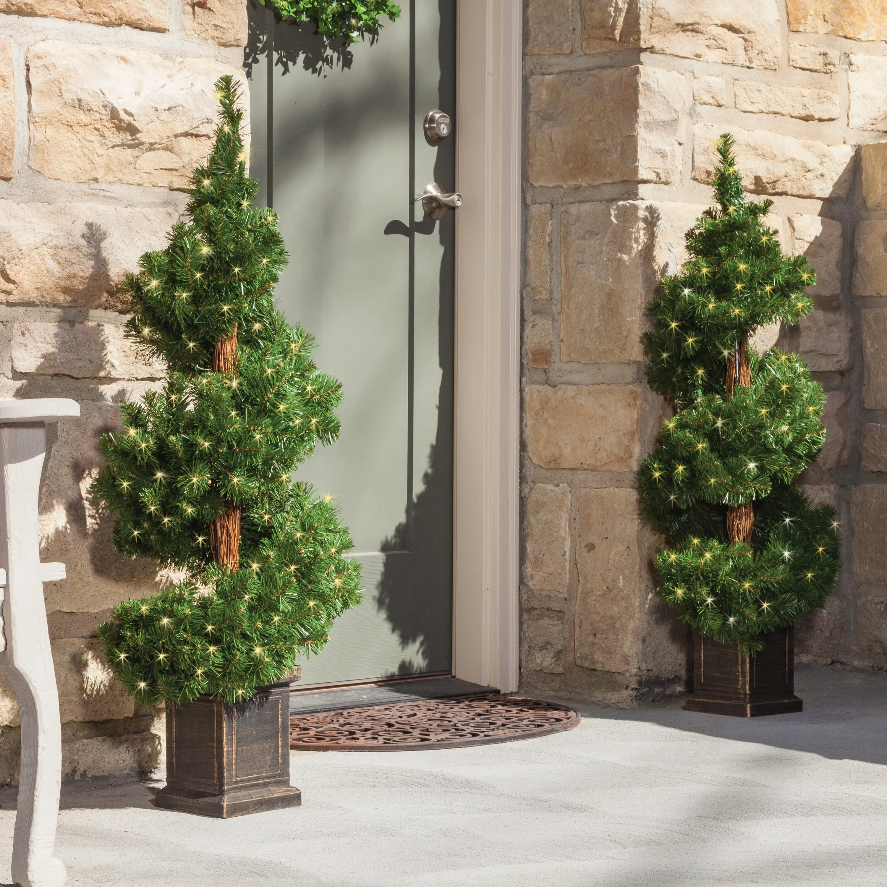 Set of 2 3.5 Foot High Potted Pre Lit Potted Spiral Trees - N/A