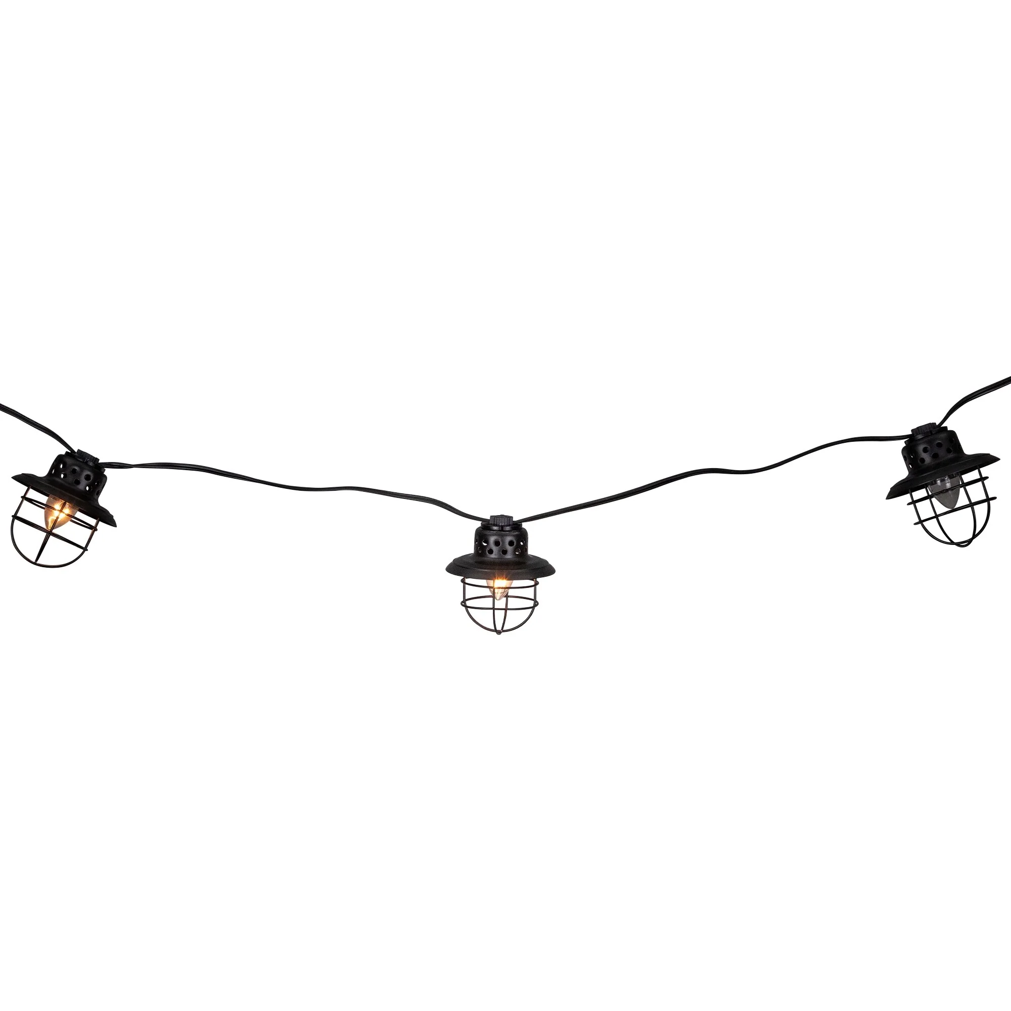 10-Count Black Caged Fisherman Lantern Patio String Light Set - 9' Black Wire