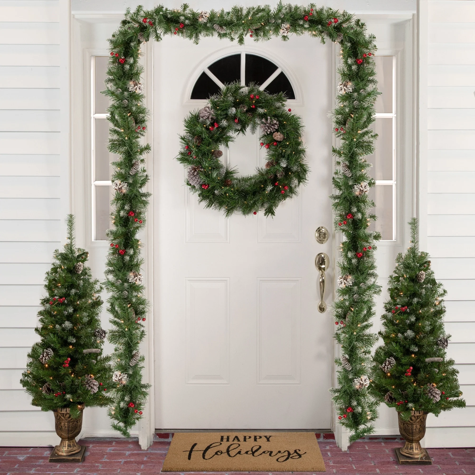 5-Piece Frosted Verona Berry Pine Artificial Christmas Entryway Set - 4 Foot