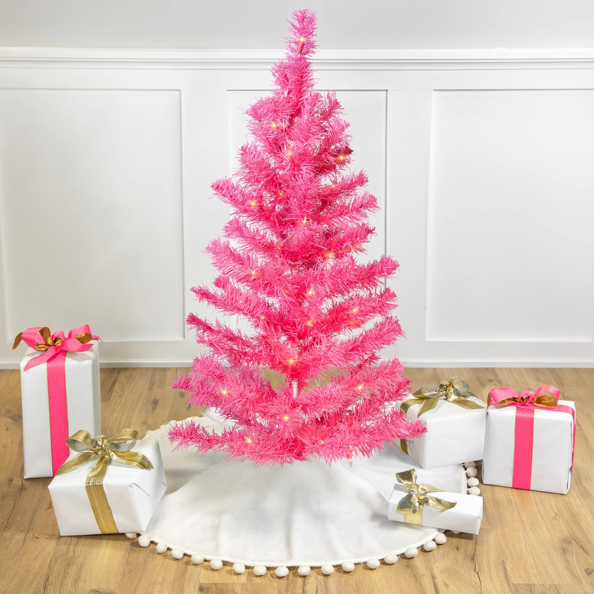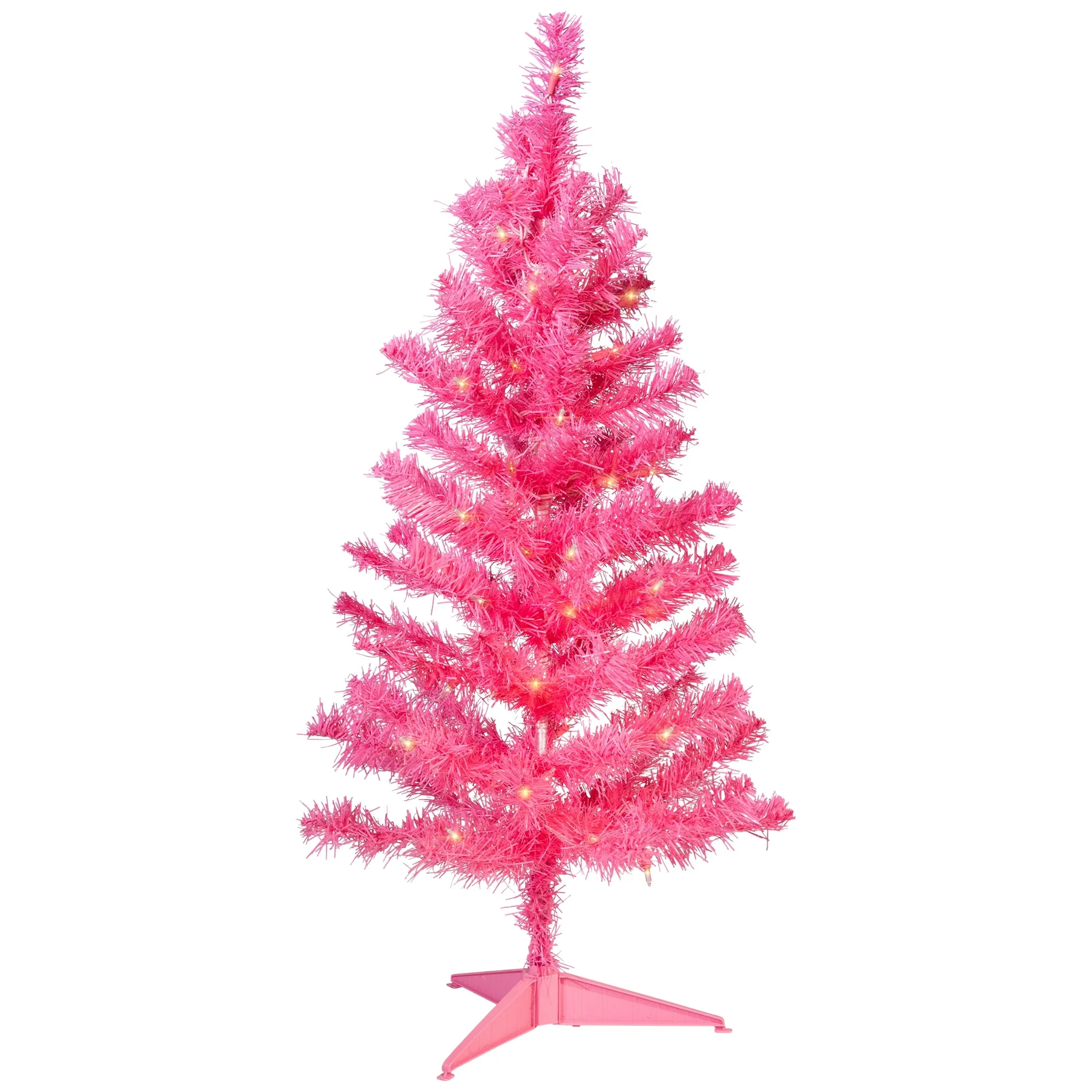Pre-Lit Tinsel Artificial Christmas Tree - 3' - Pink - Clear Lights - 3 Foot
