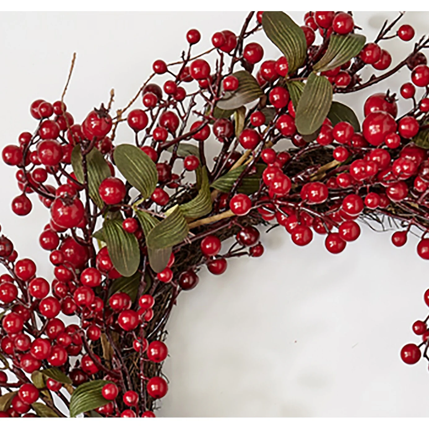 22" Artificial Christmas Red Holly Berry and Green Leaves Wreath on Natural Twig Base
