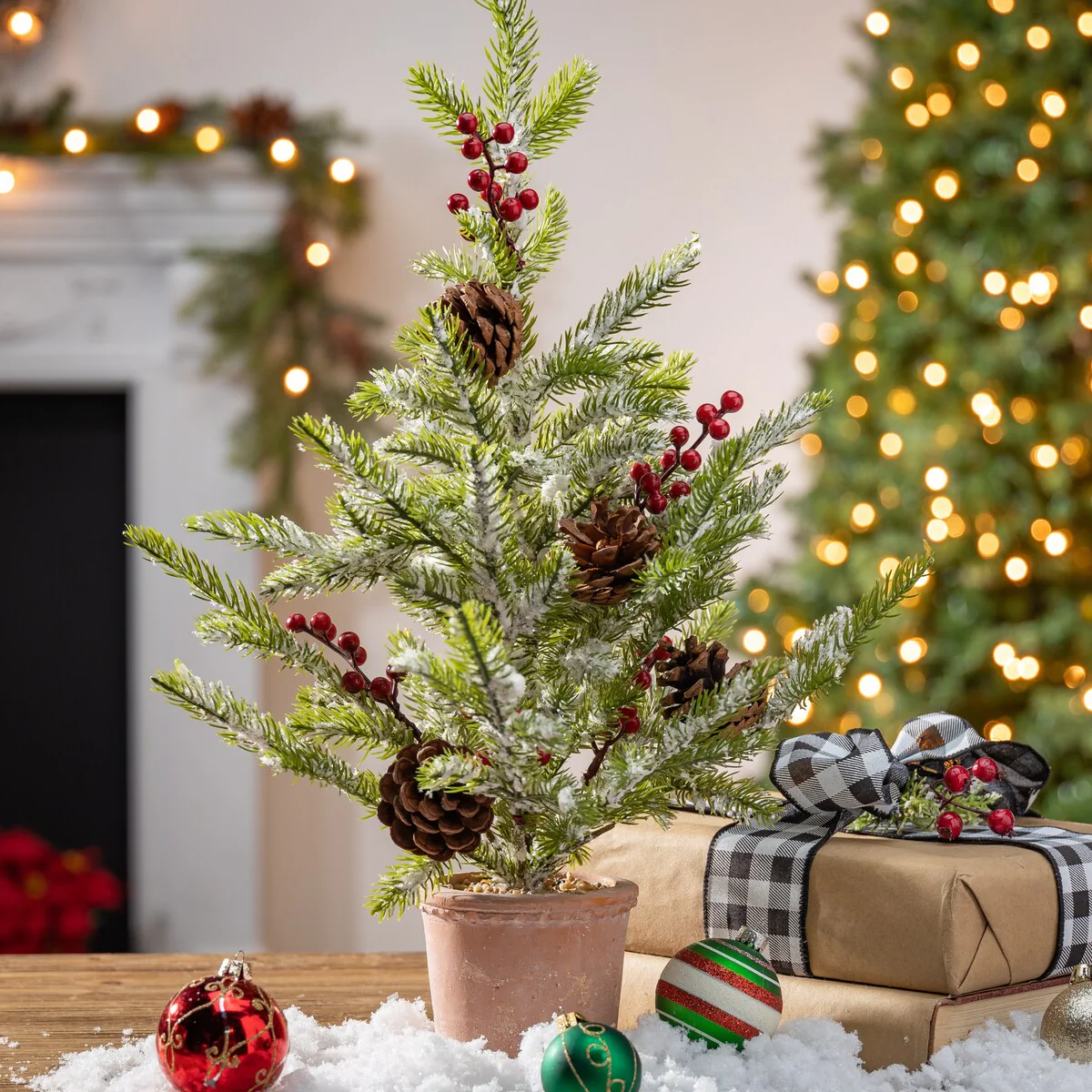 Elegant 22 inch Potted Pine Tree with Berries and Pinecones