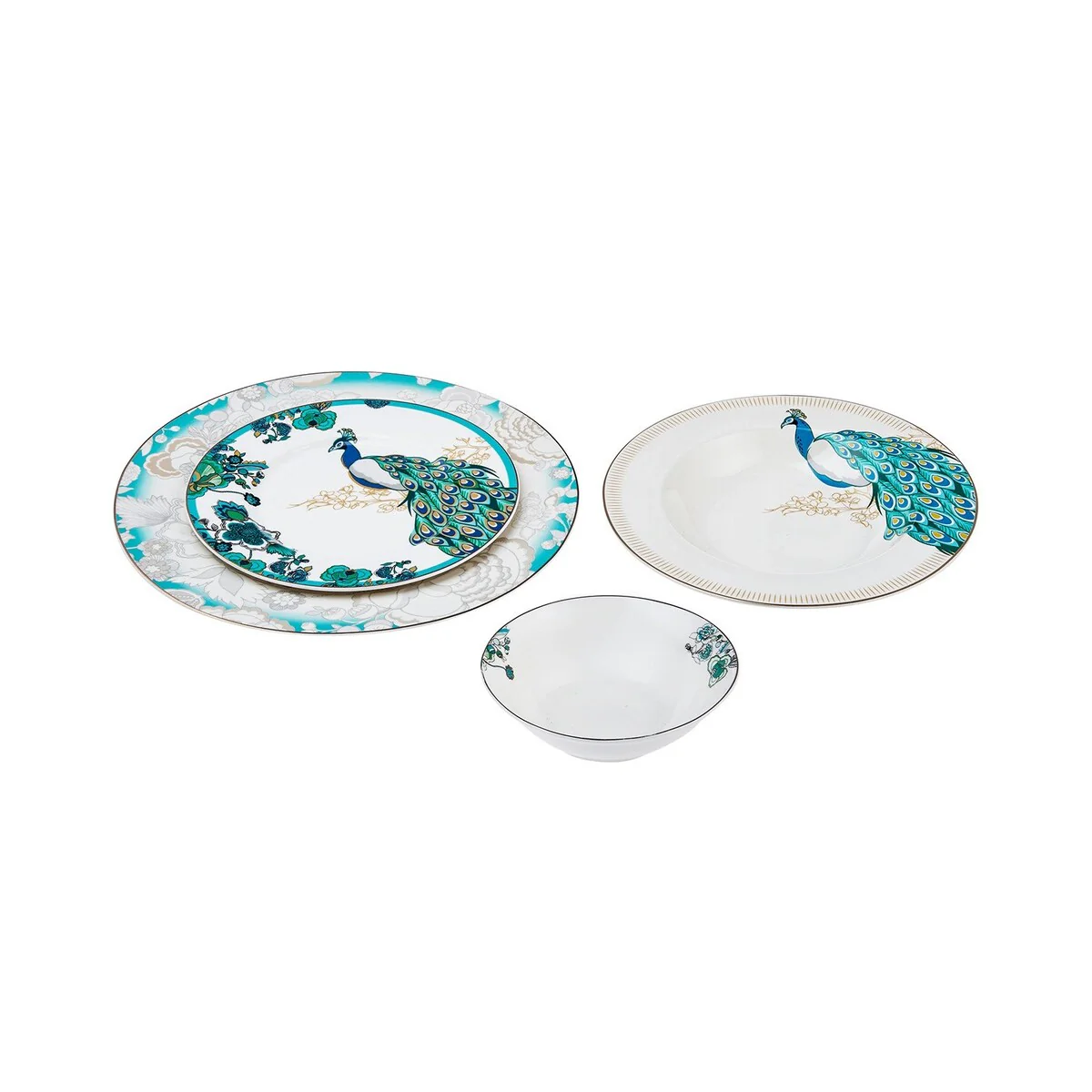 Karaca Peacock Porcelain Dinnerware Set of 24 for 6