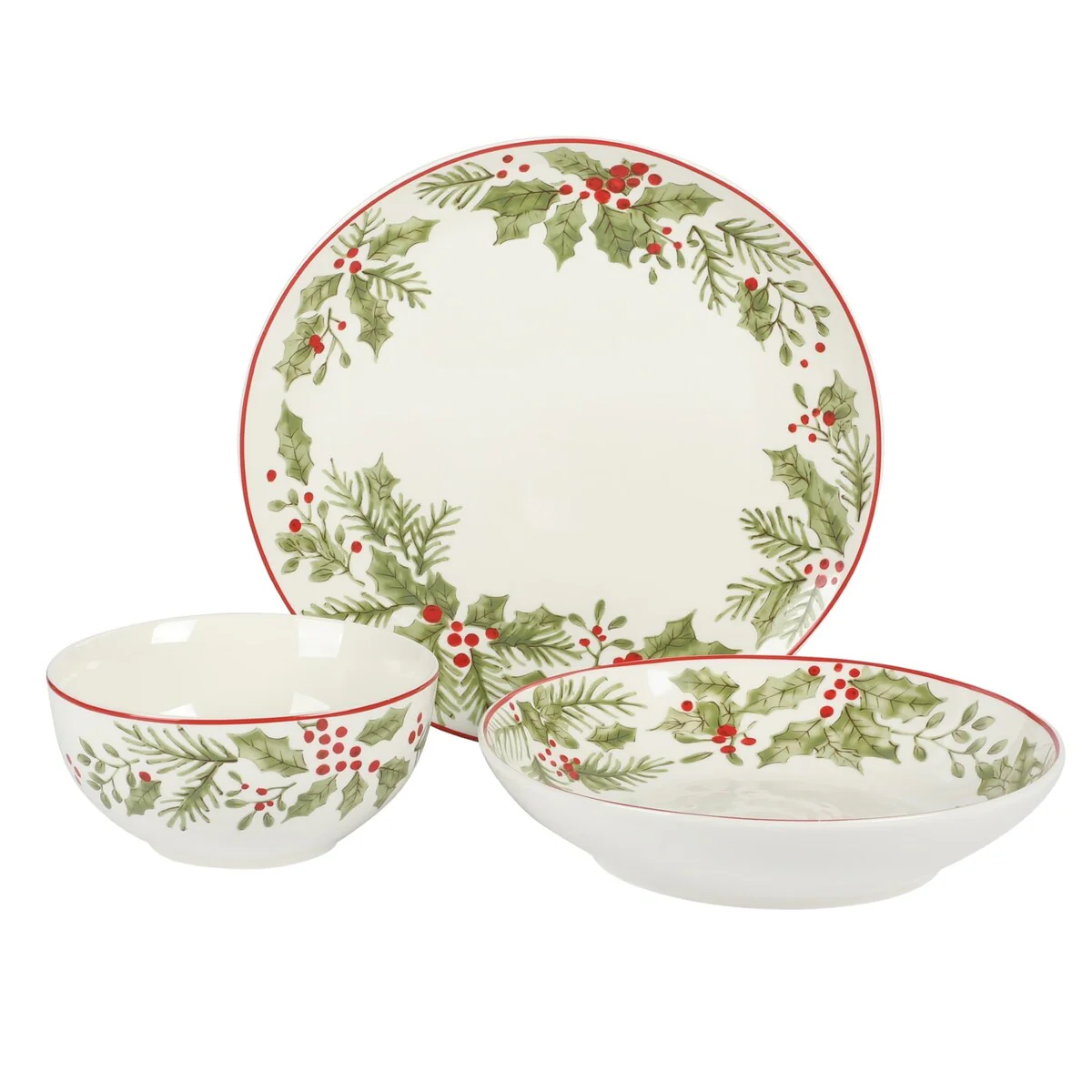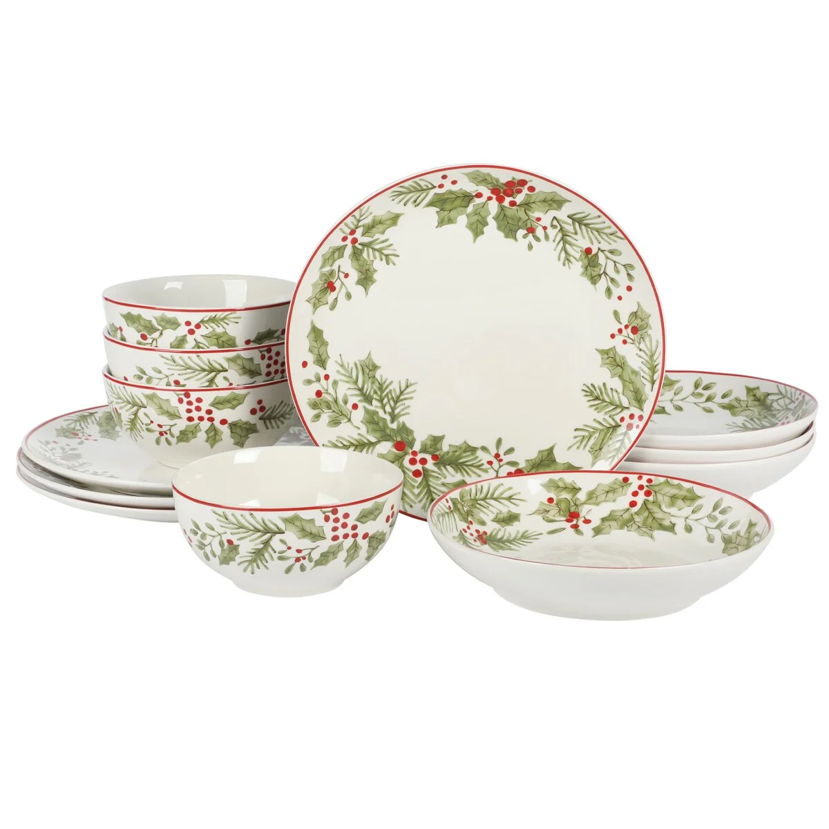 Spode Christmas Tree Holly Fine Earthenware 12-Piece Dinnerware Set