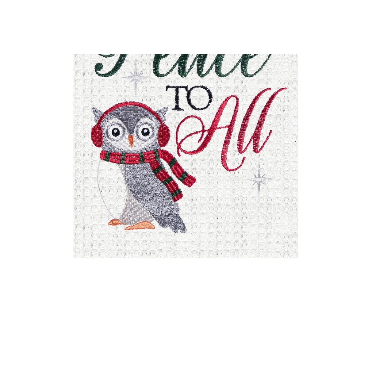 27" x 18" Christmas Holiday "Peace To All" Sentiment Featuring Gray Owl Cotton Embroidered Waffle Weave Kitchen DishTowel