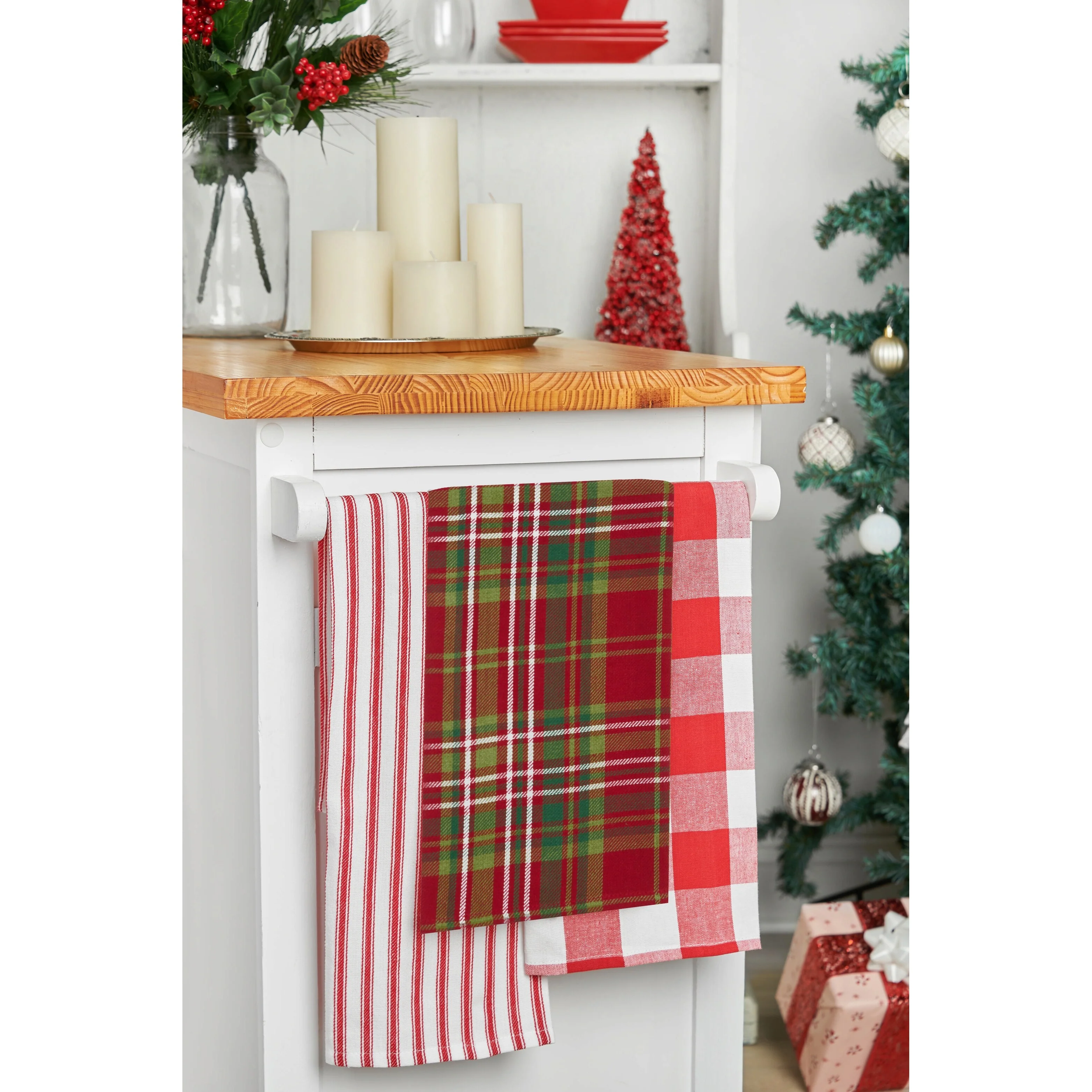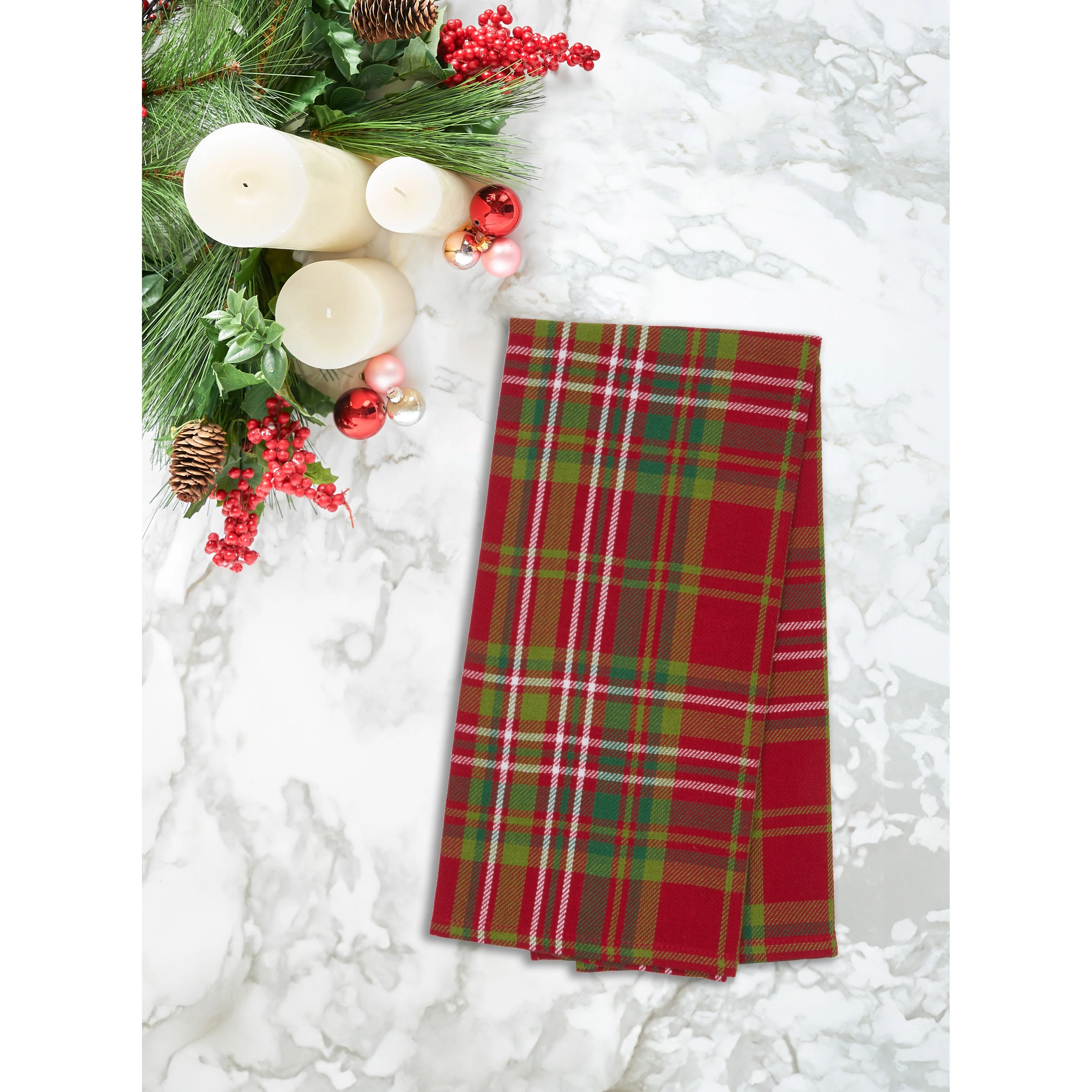 27' X 18" Jonah Plaid Woven Cotton Kitchen Dish Towel, Red, White and Green Plaid