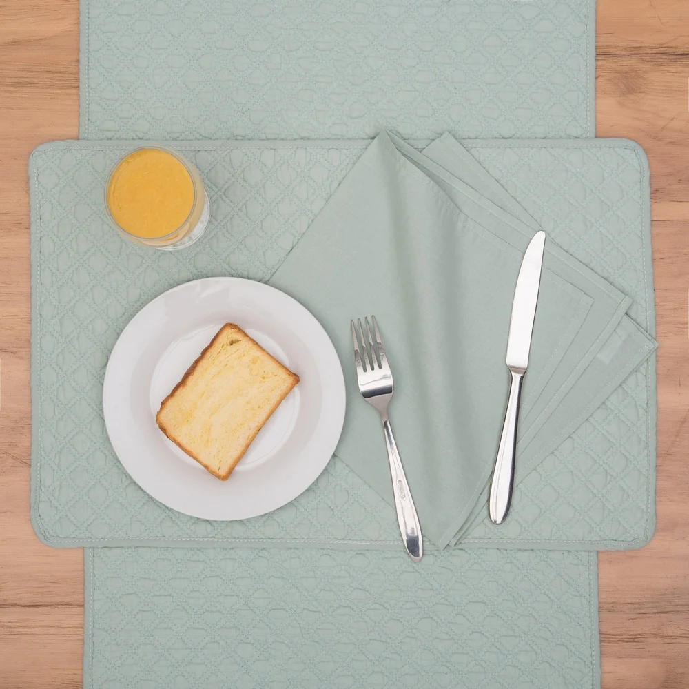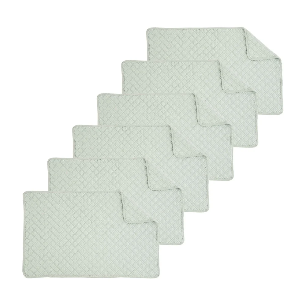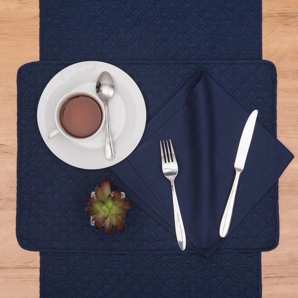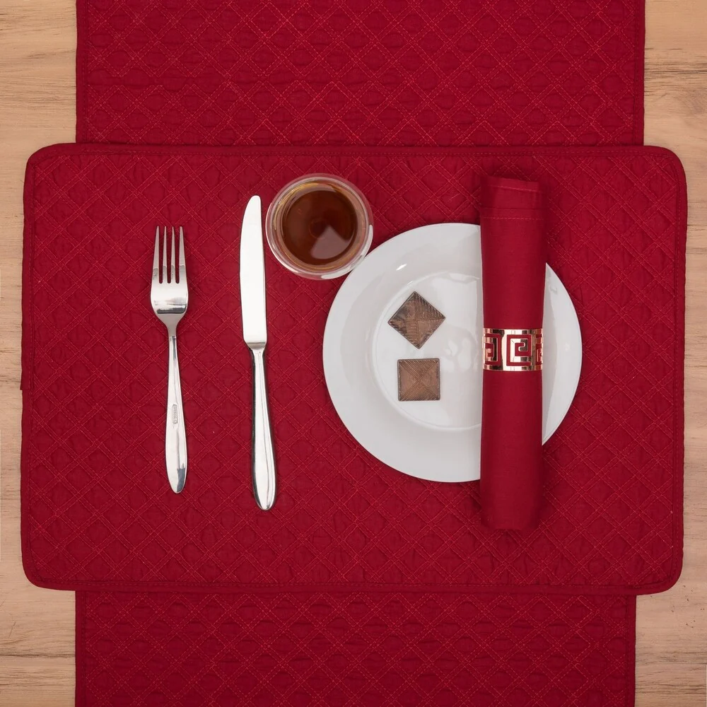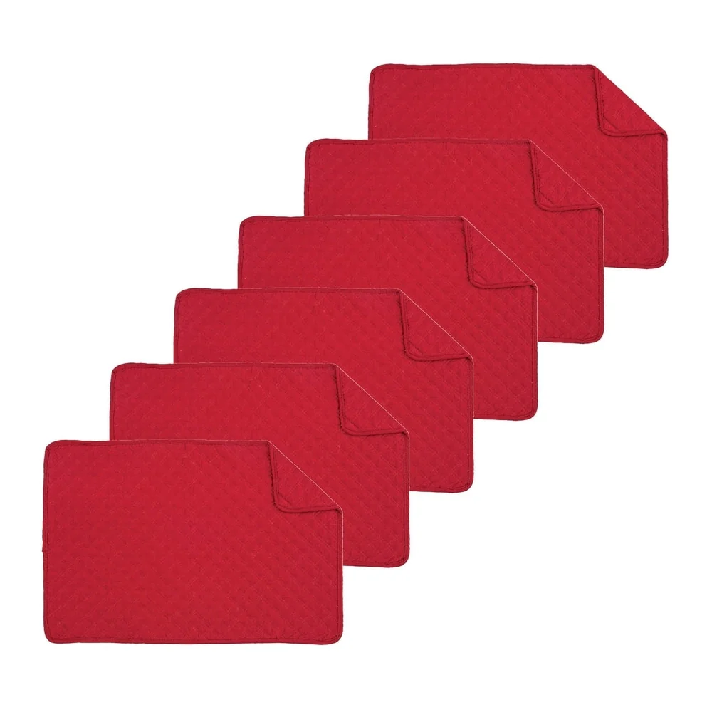 Curate a special evening at any supper with these soft and scintillating quilted placemats. Quilted cotton brings a cozy and casual feel to your table, but rich solid color also dresses up the joint for formal events and dinner parties. Crafted of 100-percent cotton and finished with a hemmed edge, these placemats are washable.