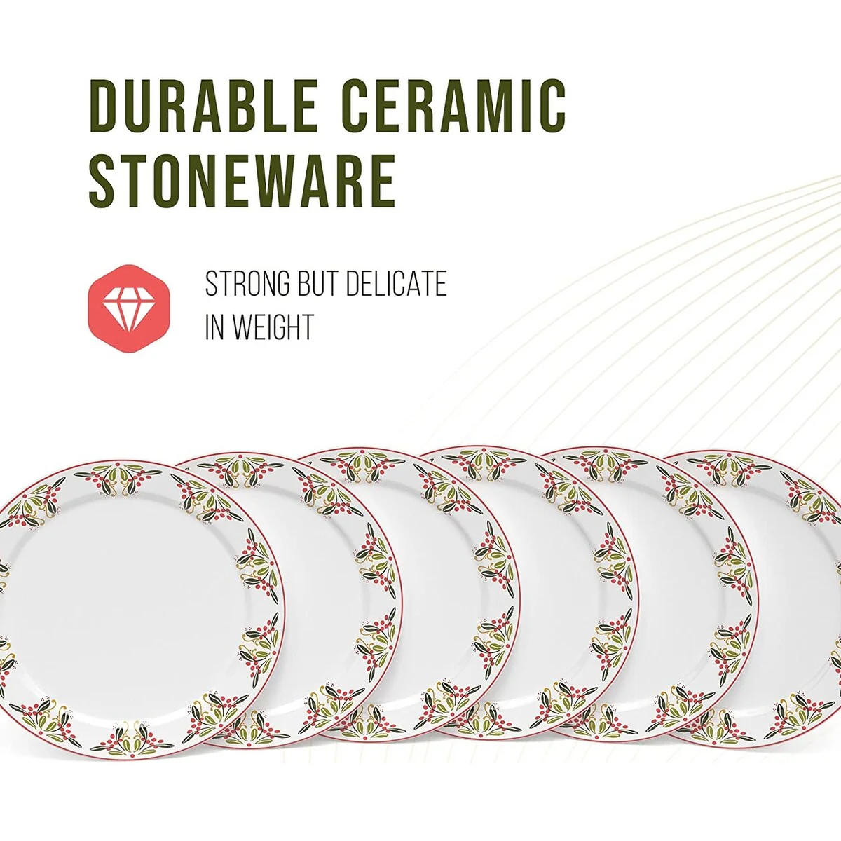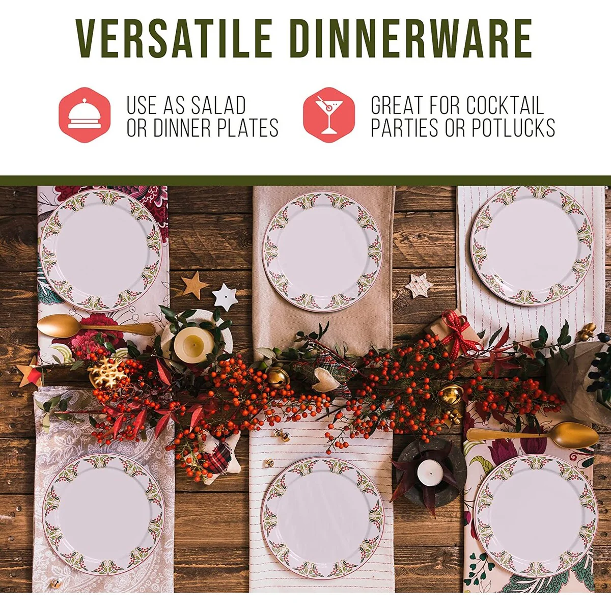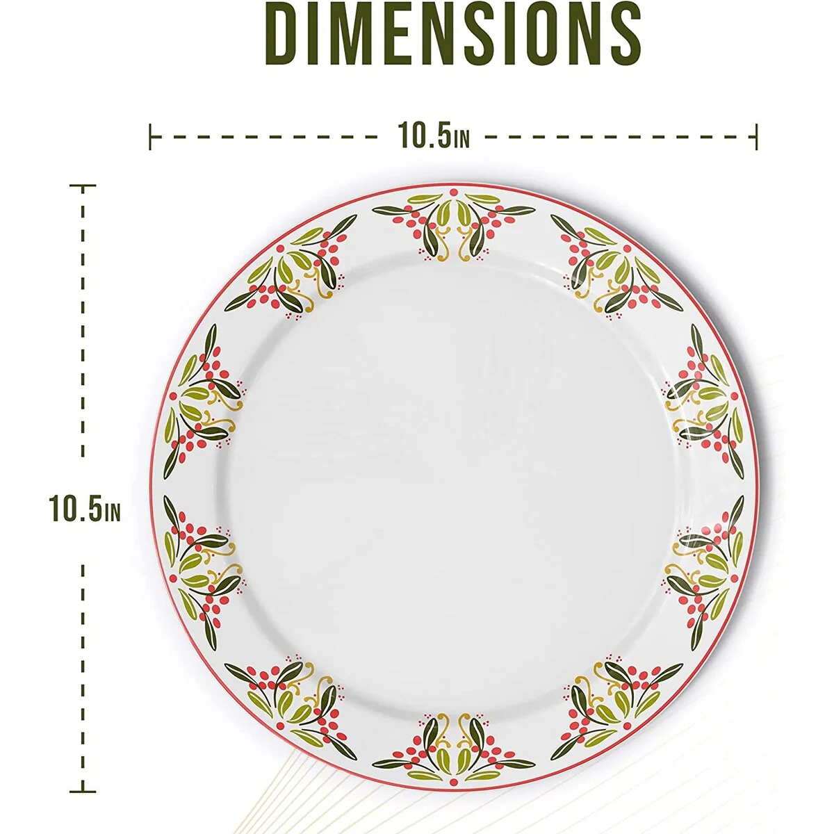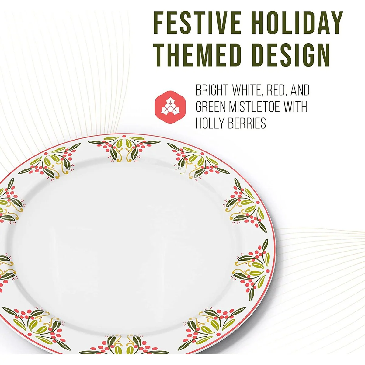 - HOLIDAY THEMED DESIGN: Spice up your Christmas table with these white, red, and green holiday plates with a mistletoe and holly berry design that's perfect for this holiday season.