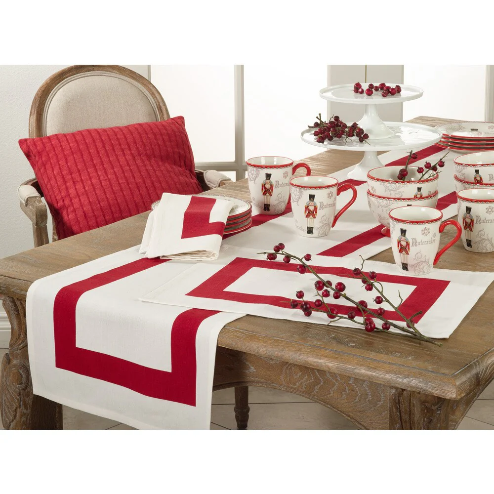Perfect for both formal dinner settings and casual meals, this table runner is sure to delight with its banded border design in a red hue. Woven with cotton, the table runner is great during the holidays. Pair with festive decor for a cohesive look.