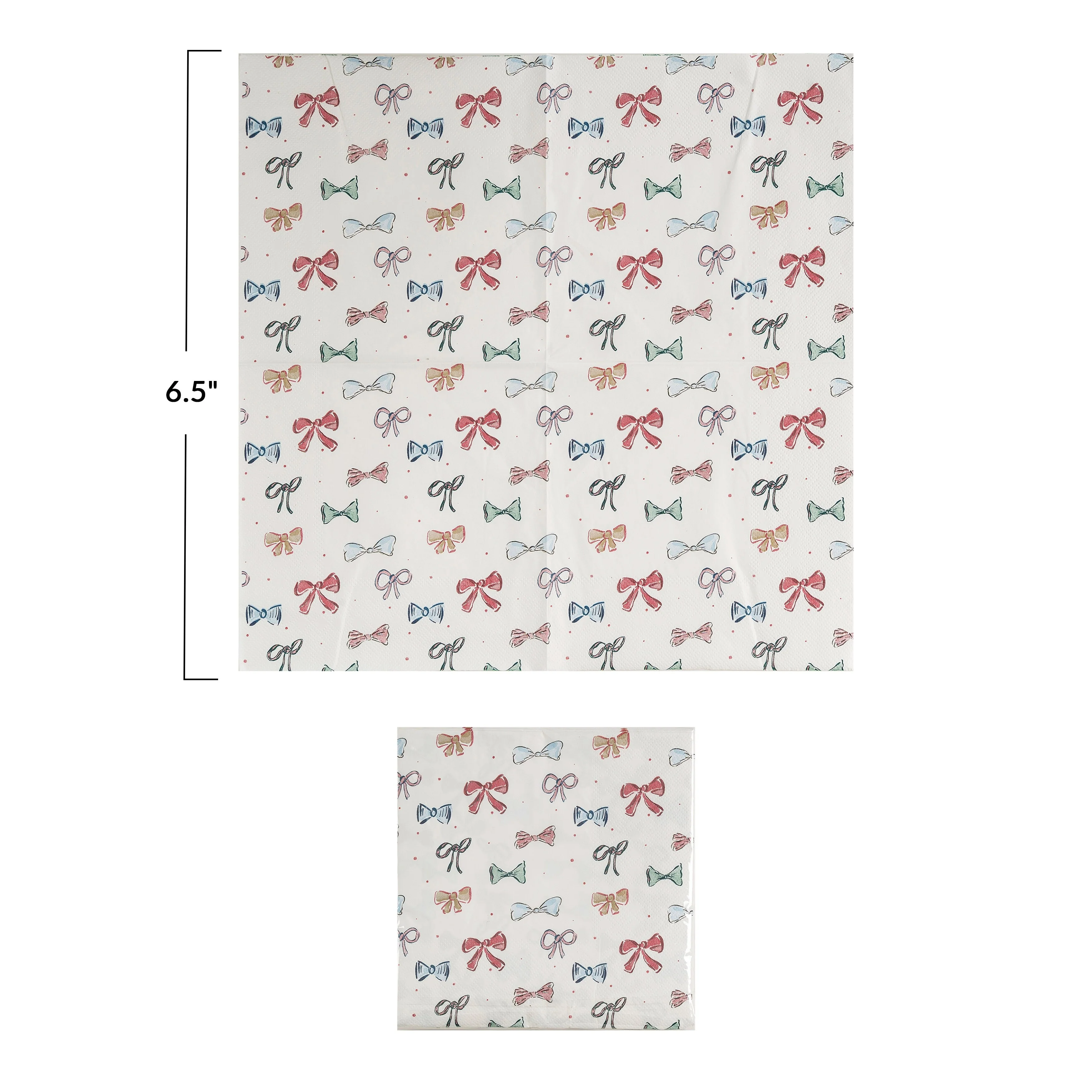 - A delightful array of multicolor paper napkins, each adorned with a charming bows pattern to enhance any table setting
