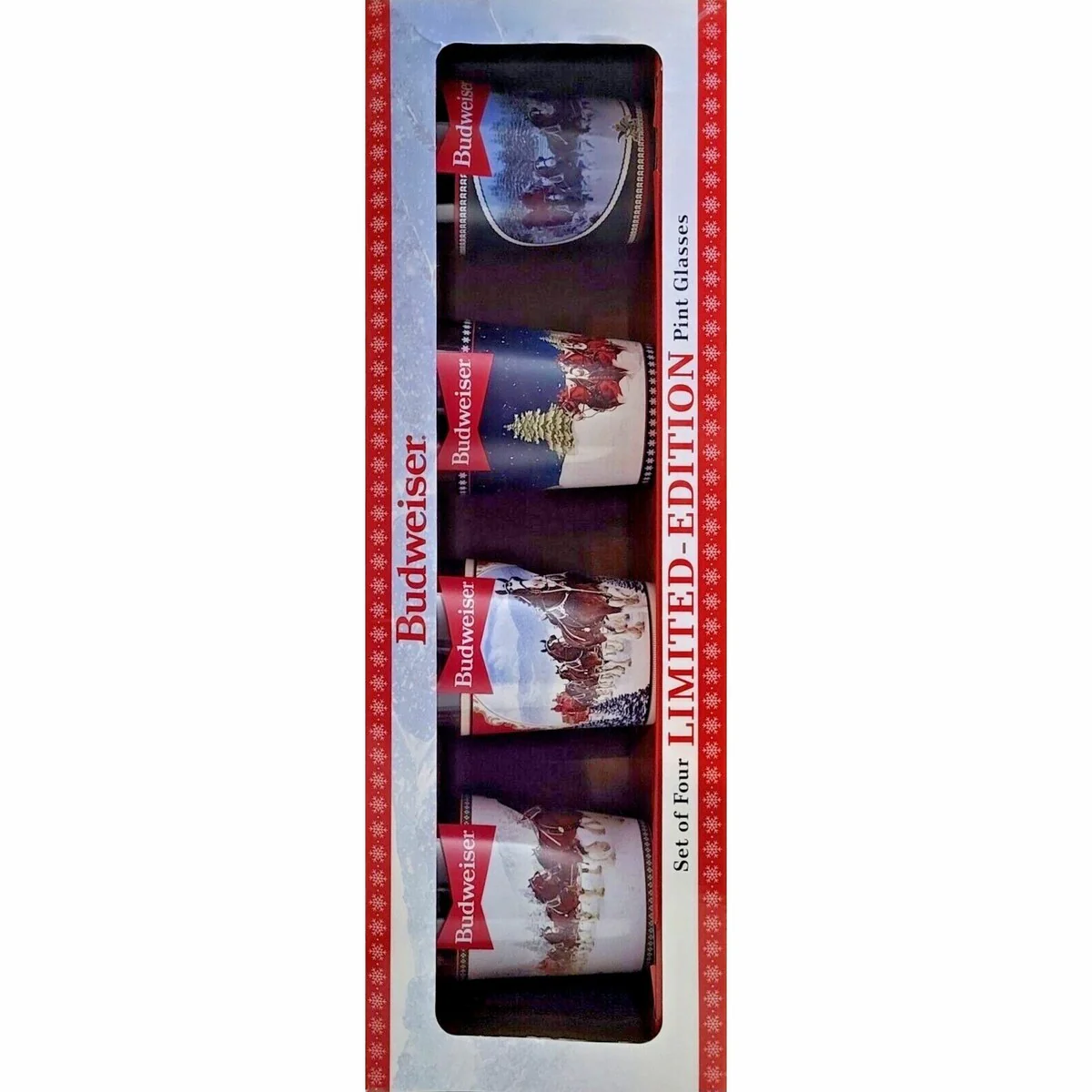 Budweiser Holiday Gifting Set of 4 Clydesdales Glasses 16oz. Christmas Limited Edition