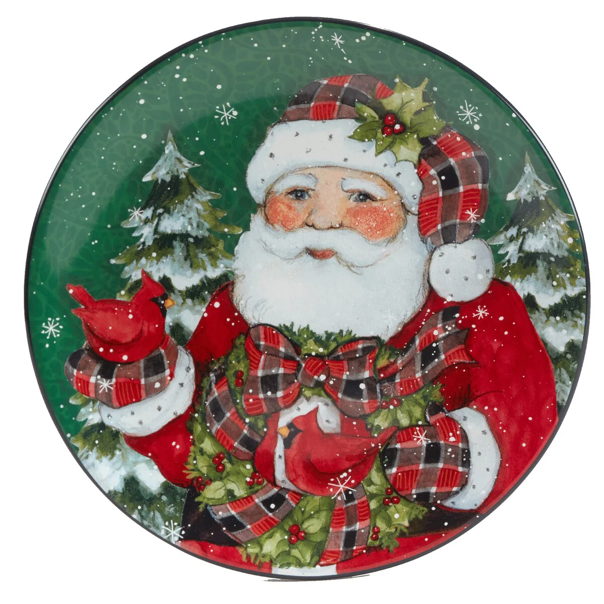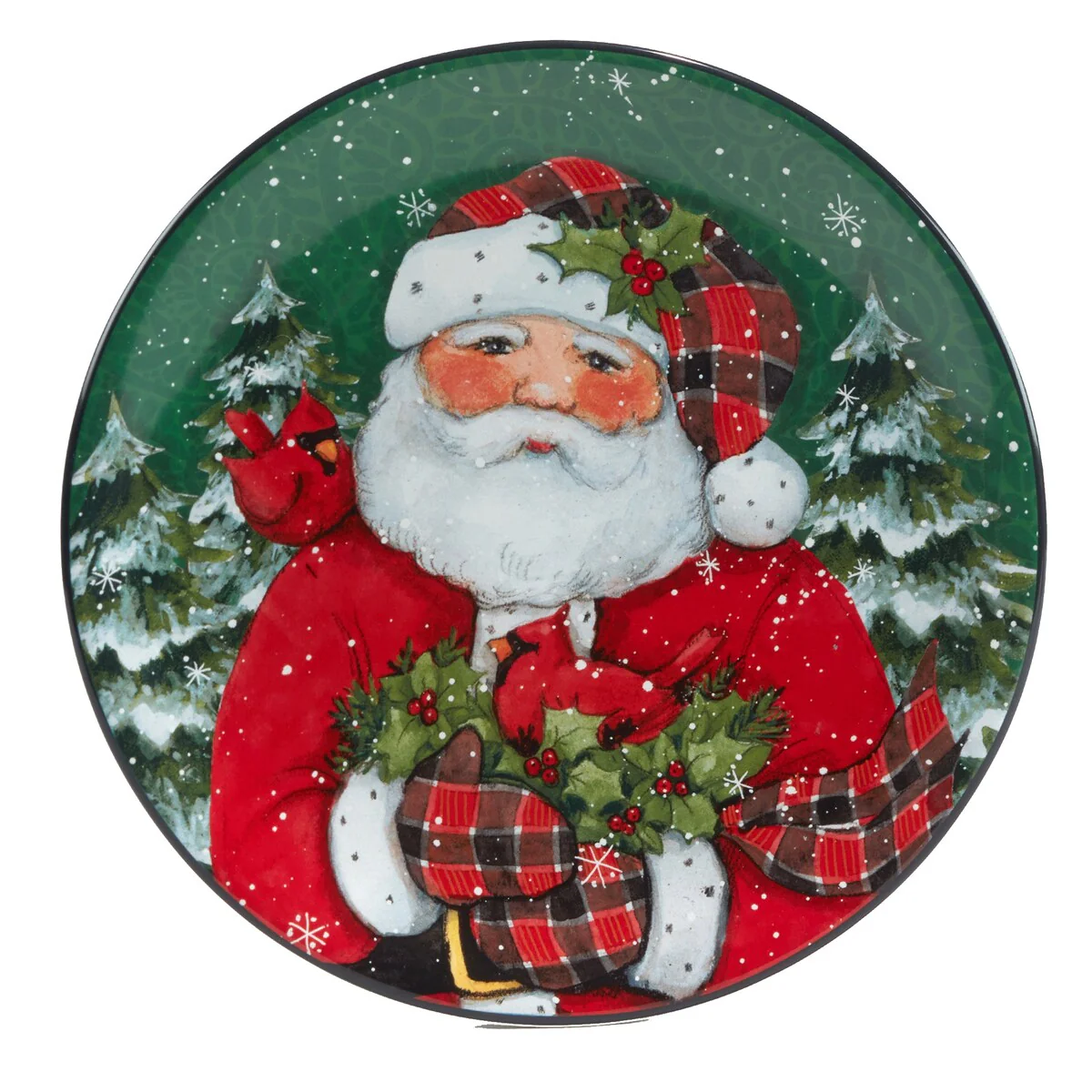 - Includes: Christmas Lodge Santa 9 inches Salad/Dessert Plates, Set of 4