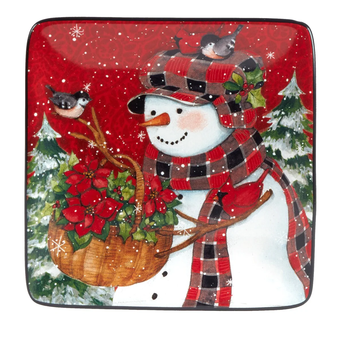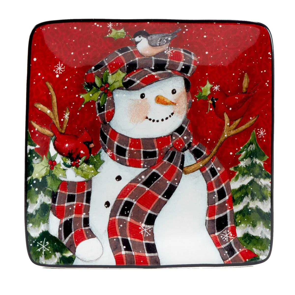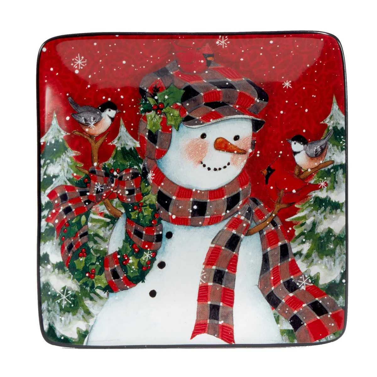- Includes: Christmas Lodge Snowman 6 inches Canape/Luncheon Plates, Set of 4