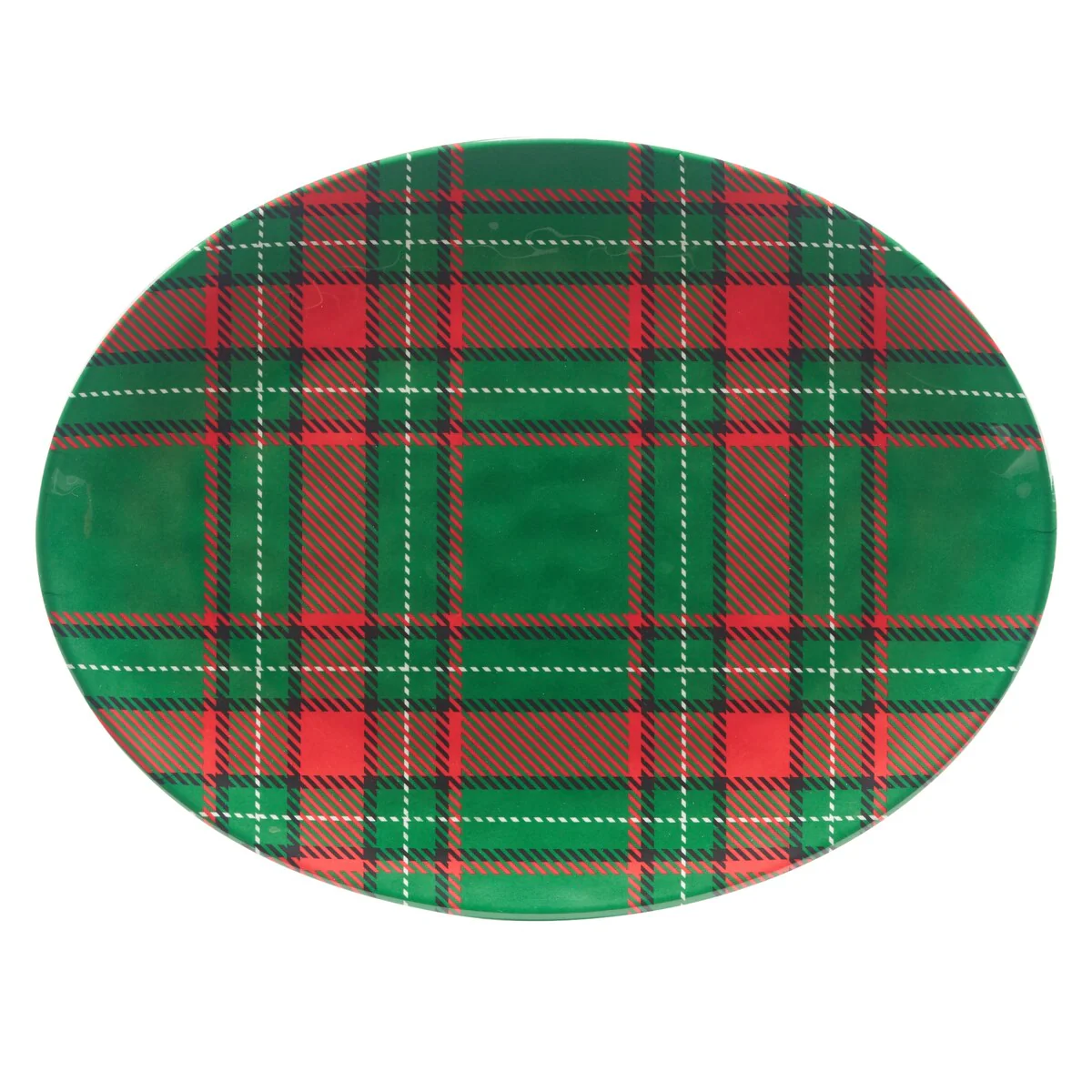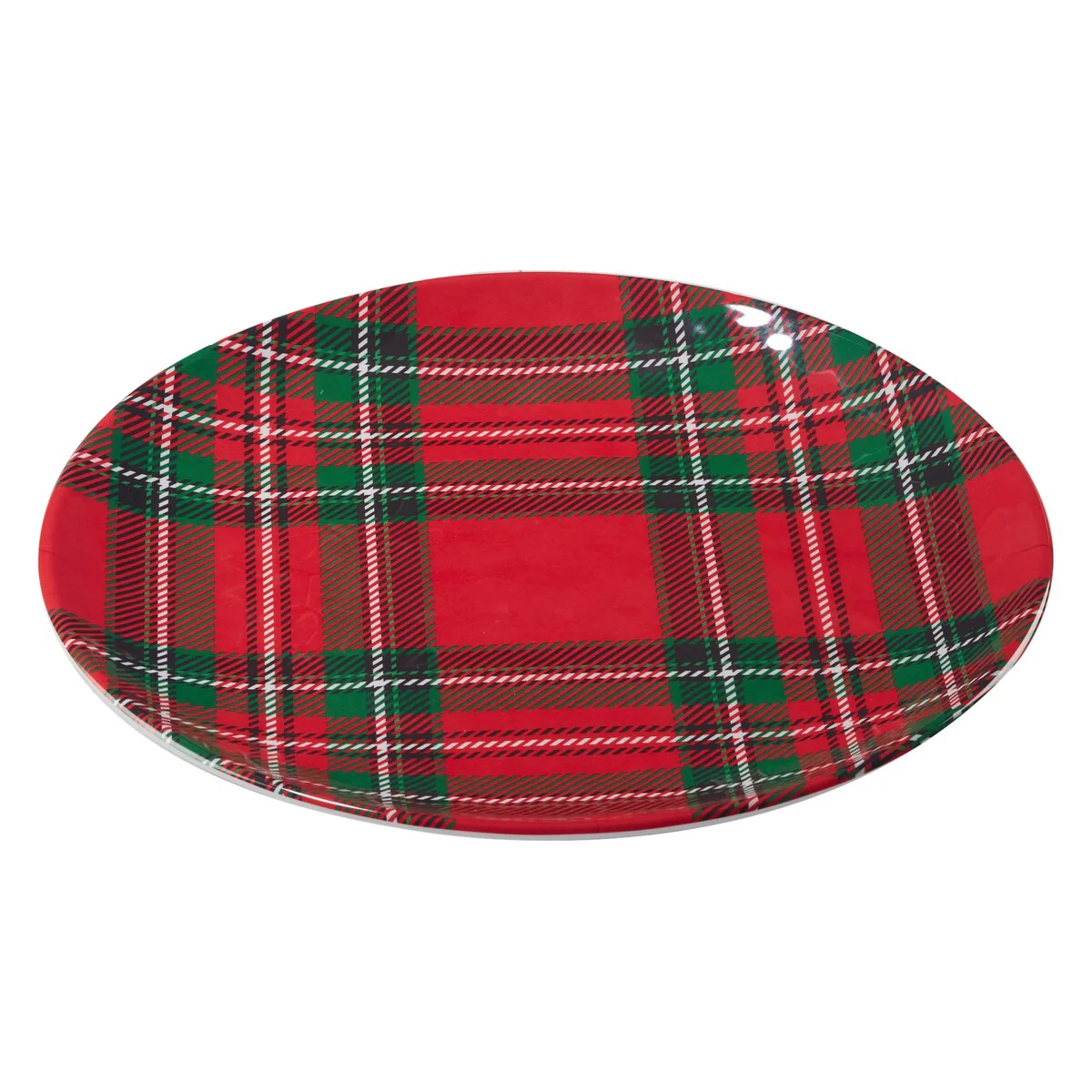 Certified International Christmas Plaid Melamine 2 Piece Platter Set - 14-inch