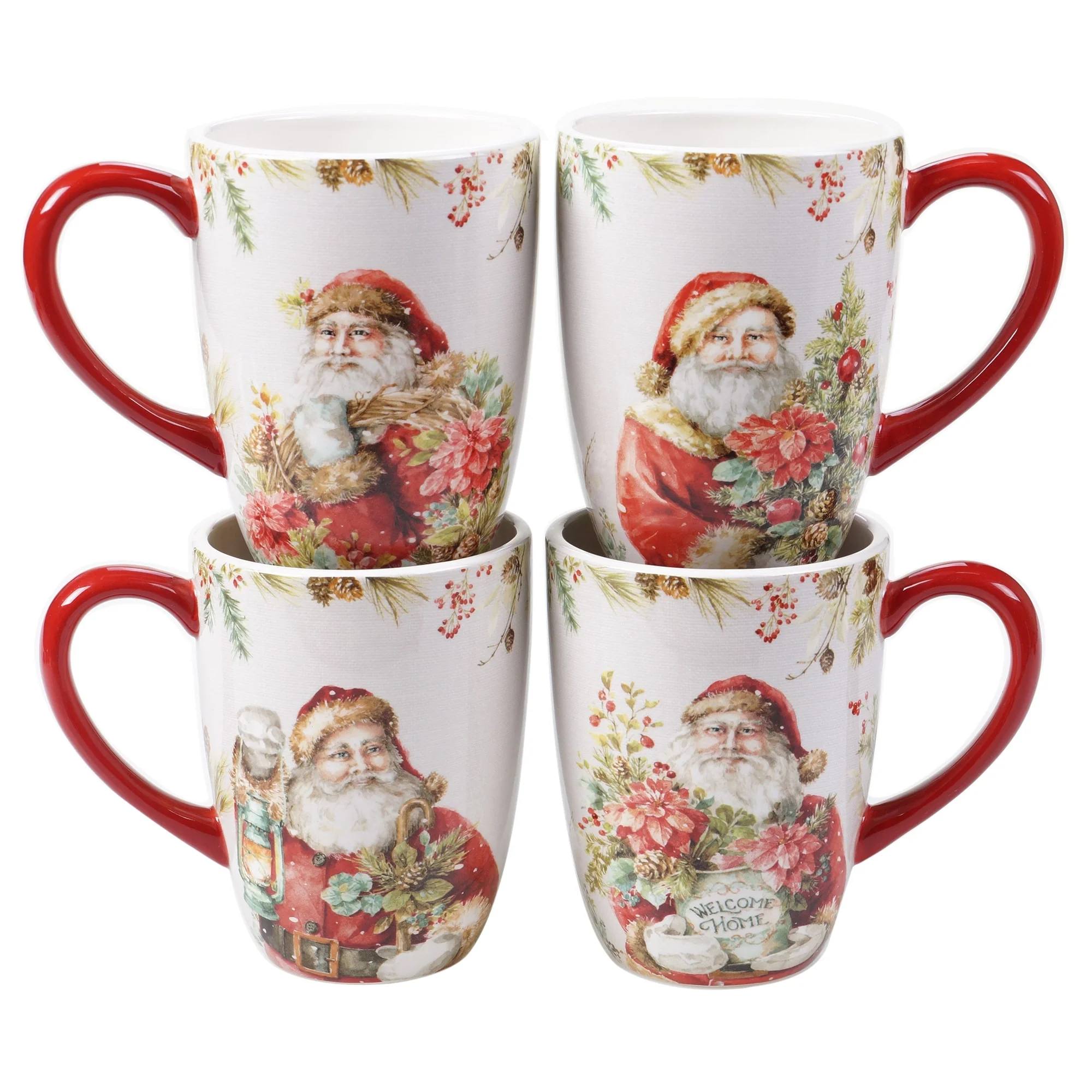 Add a touch of festive charm to your holiday gatherings with Certified International's "A Christmas Story" ceramic dinnerware and serveware collection. The beautiful watercolor art by Lisa Audit depicts vintage Santas surrounded by red poinsettias and berries, creating a warm and inviting atmosphere for your family traditions. This 16-piece set includes everything you need for a service of four, and the durable earthenware construction ensures that you can enjoy it for years to come.