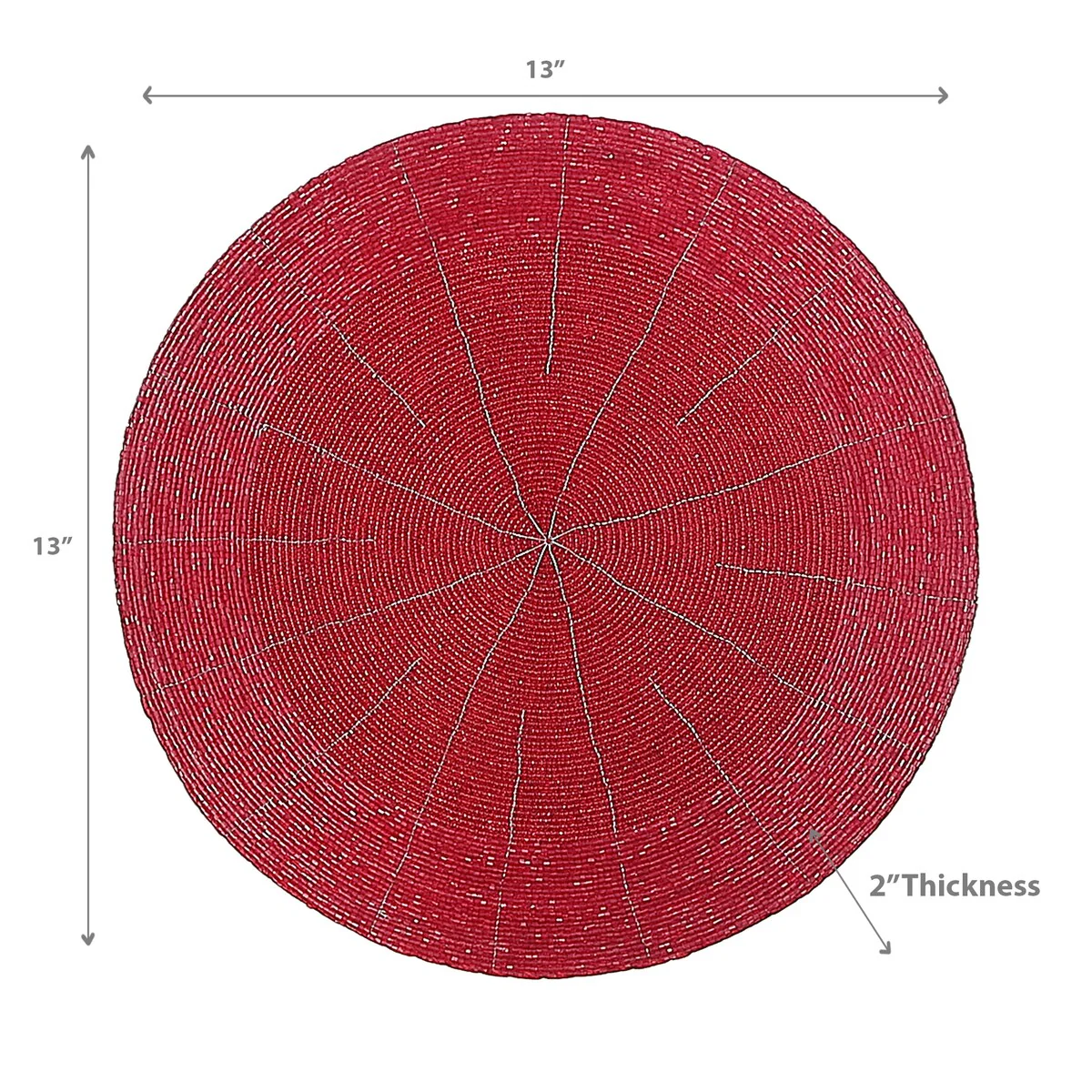 Add a glorious shine to your dining table by decorating it with Beaded Round Placemat (Red) made with glass beads. The beaded design of the placemat has an eye-catching unique texture that is not only pleasing but also functional in protecting the table from stains and scratches. The round-shaped placemat is a stylish addition to your decor and can also be placed on a side table or coffee table for decorating the vases and statement pieces over it. It can easily be cleaned with a damp cloth and stored flat to prevent any damage.