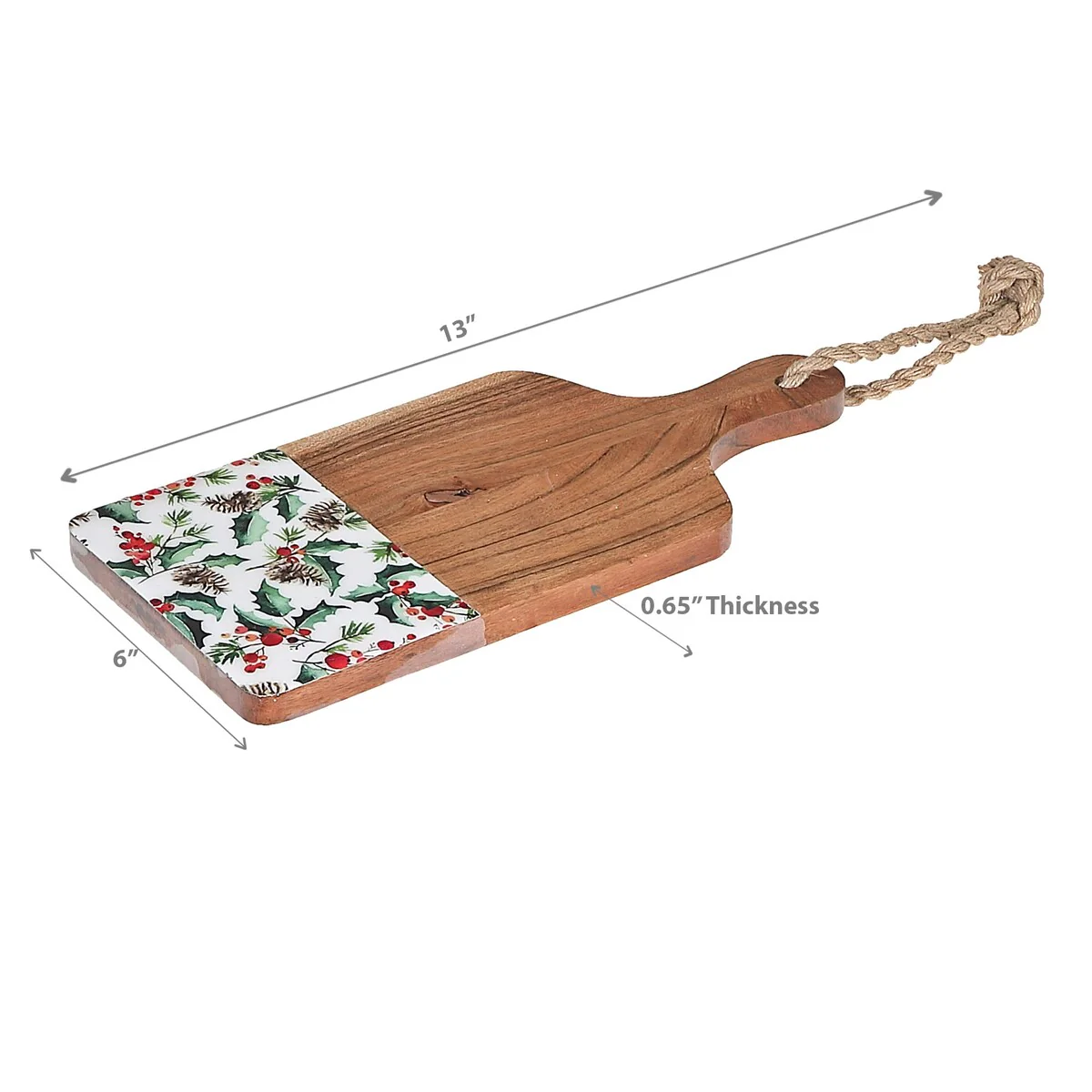 Christmas Enameled Acacia Wood Paddle Board 13" Holly Berries
