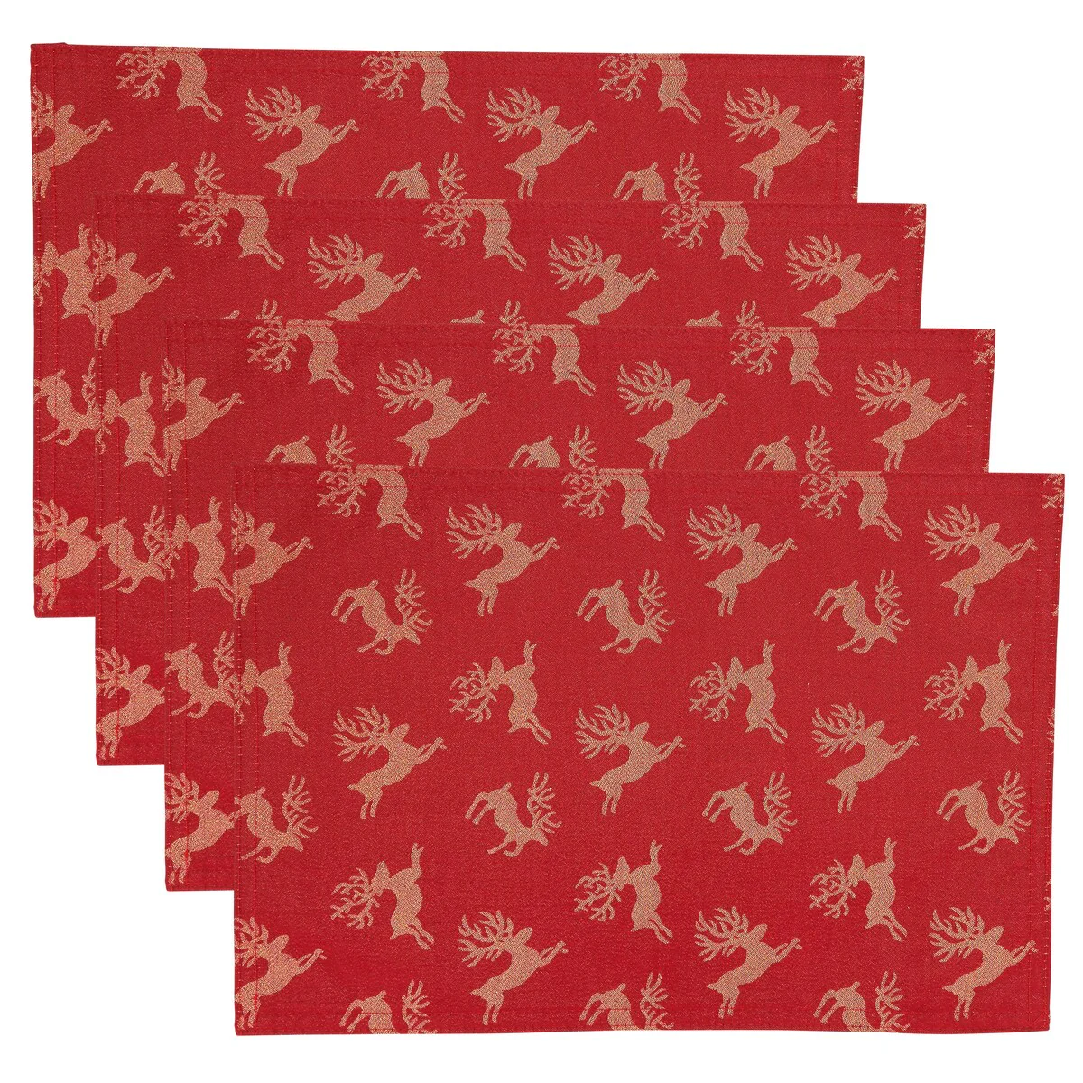 Bring the Christmas spirit right to your table with these chic and stylish Reindeer Design Placemats. On a deep, red background, the reindeers offer a subtle glimmer that adds a lovely elegant touch. The set is easy to pair with a wide range of other holiday decor, but you can also coordinate with a matching runner.