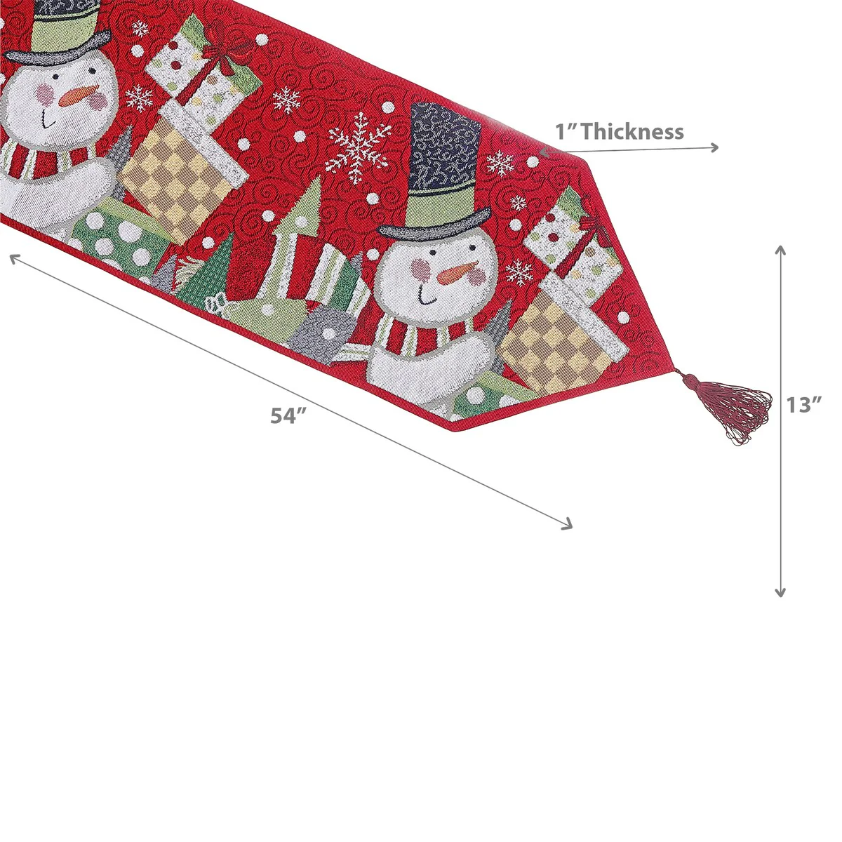 Christmas Tapestry Table Runner Snowman Holding Presents 54"