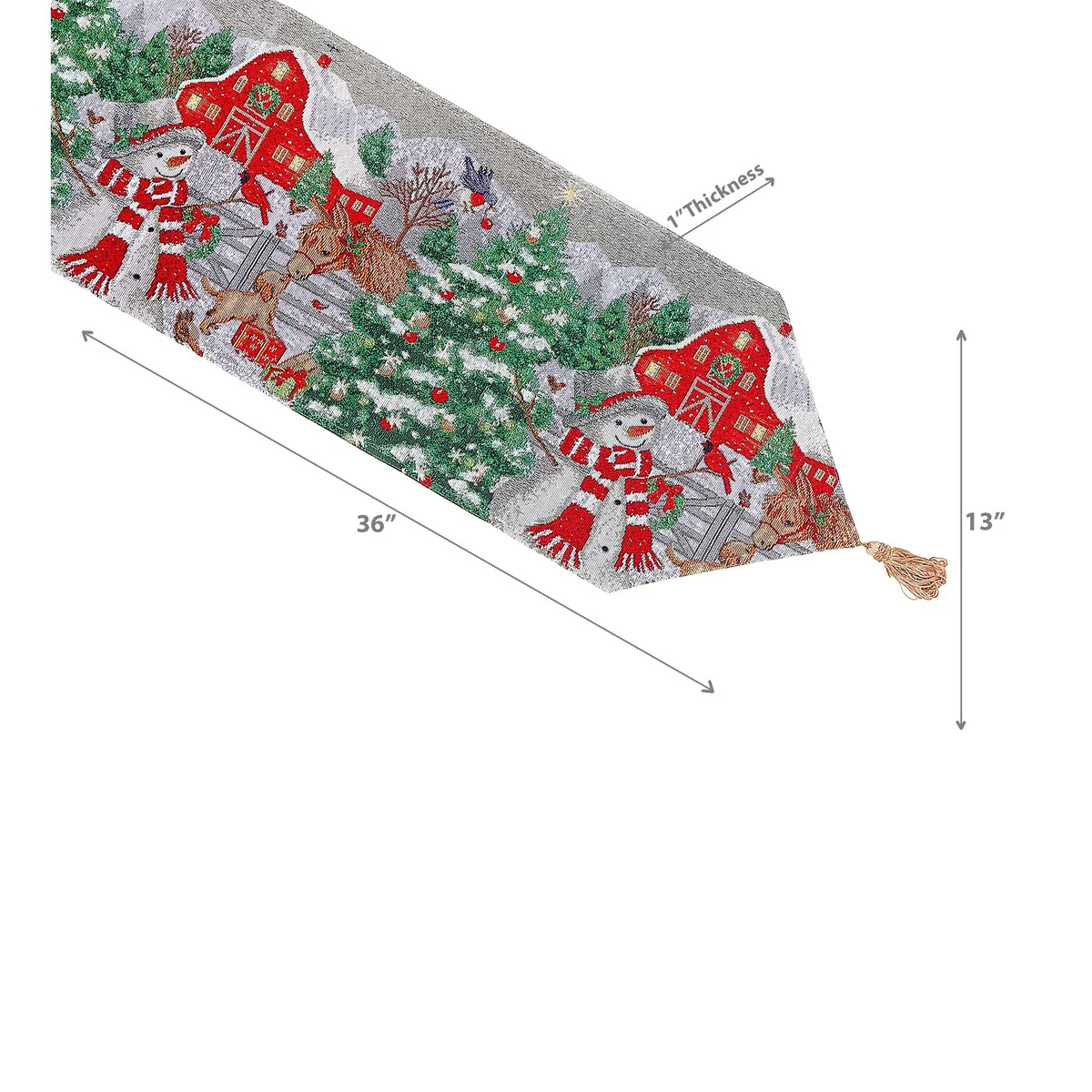 Christmas Tapestry Table Runner Snowman With Barn 36"