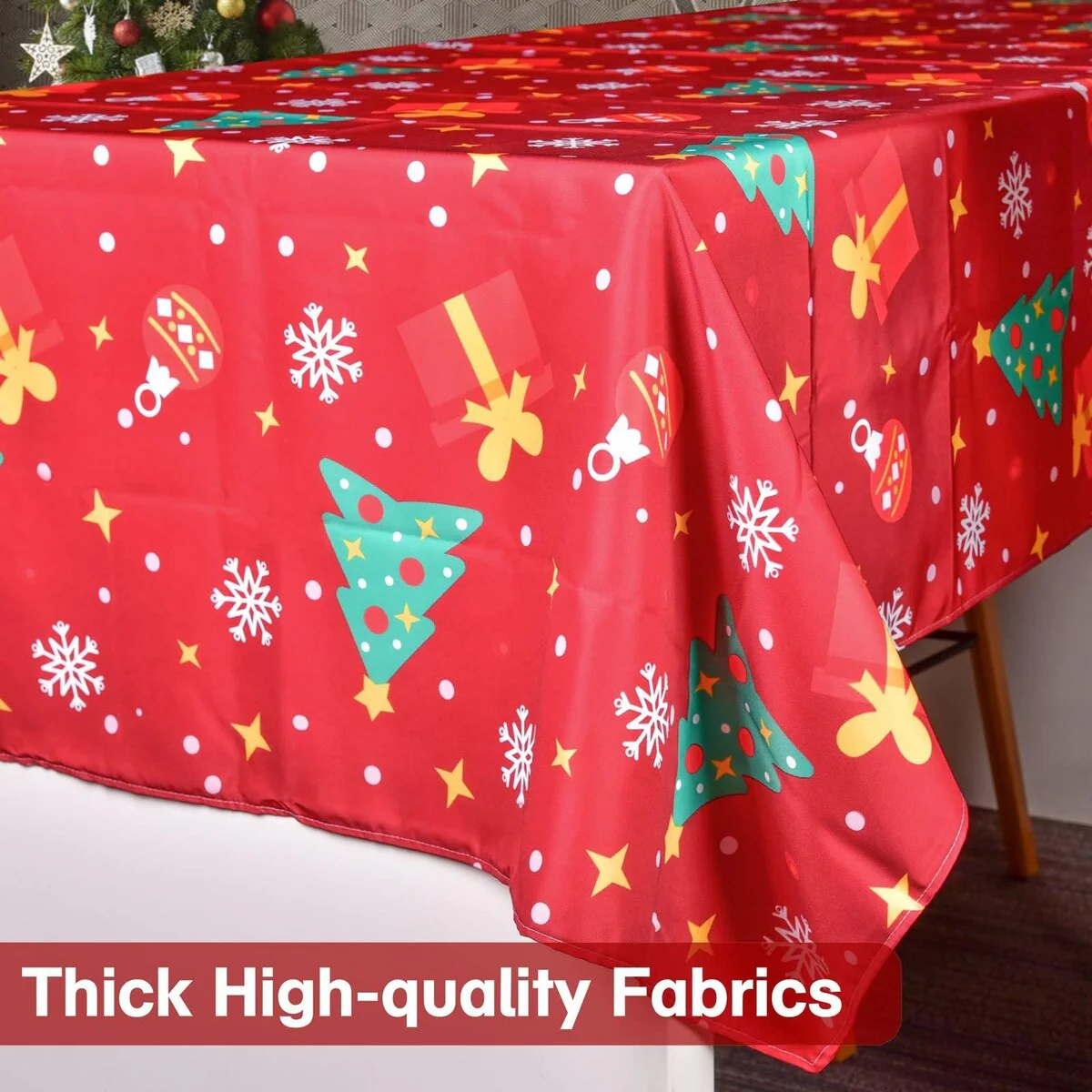 "🎄High-Quality Waterproof Christmas Tablecloth: Made of Waterproof Oxford Fabric, Soft, Comfortable and Durable.