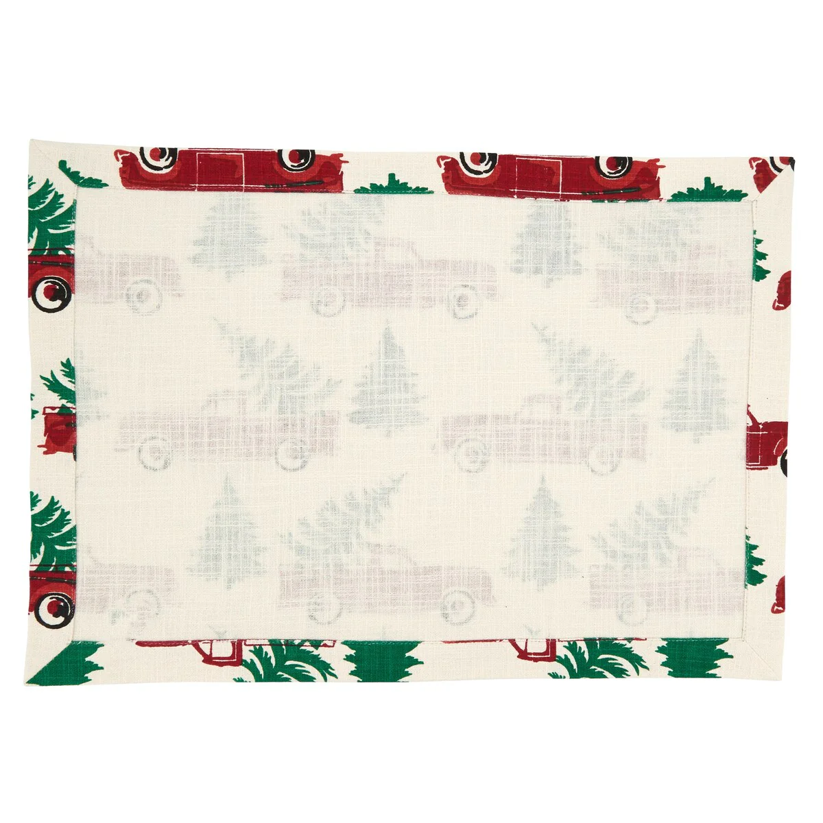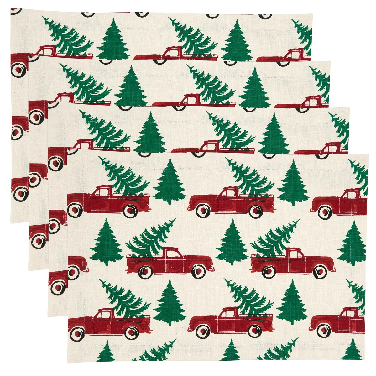 These Christmas Truck Design Placemats are sure to bring a joyful, cheerful note to your holiday tabletop. Featuring rich tones of red and green against a light background, this set will add a fun and festive note to every place setting and entertain guests throughout the season. Traditional colors also make the placemats easy to style with a wide range of dining and holiday décor for a complete table.