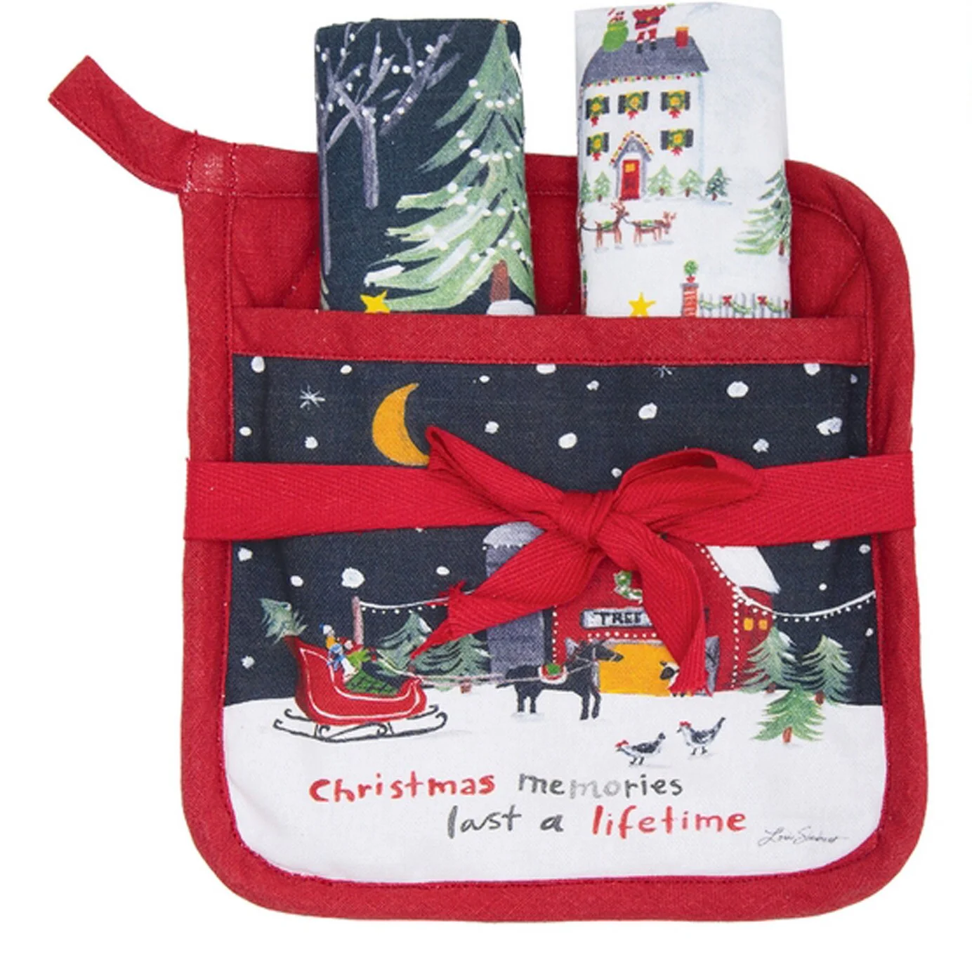 With two cotton kitchen towels, a pocket potholder and a wooden spoon, this four piece set is perfect to get you started baking your favorite treats and making a few Christmas memories along the way. You can also give this set as a gift or pair it with more from the Christmas Memories collection with art by Lori Siebert to complete the holiday scene!