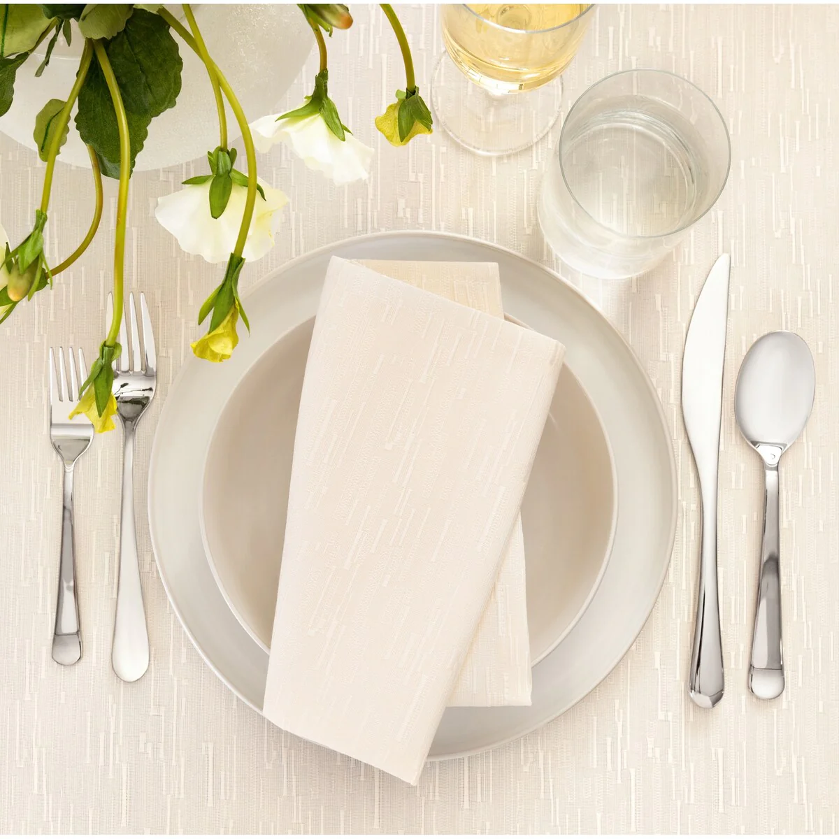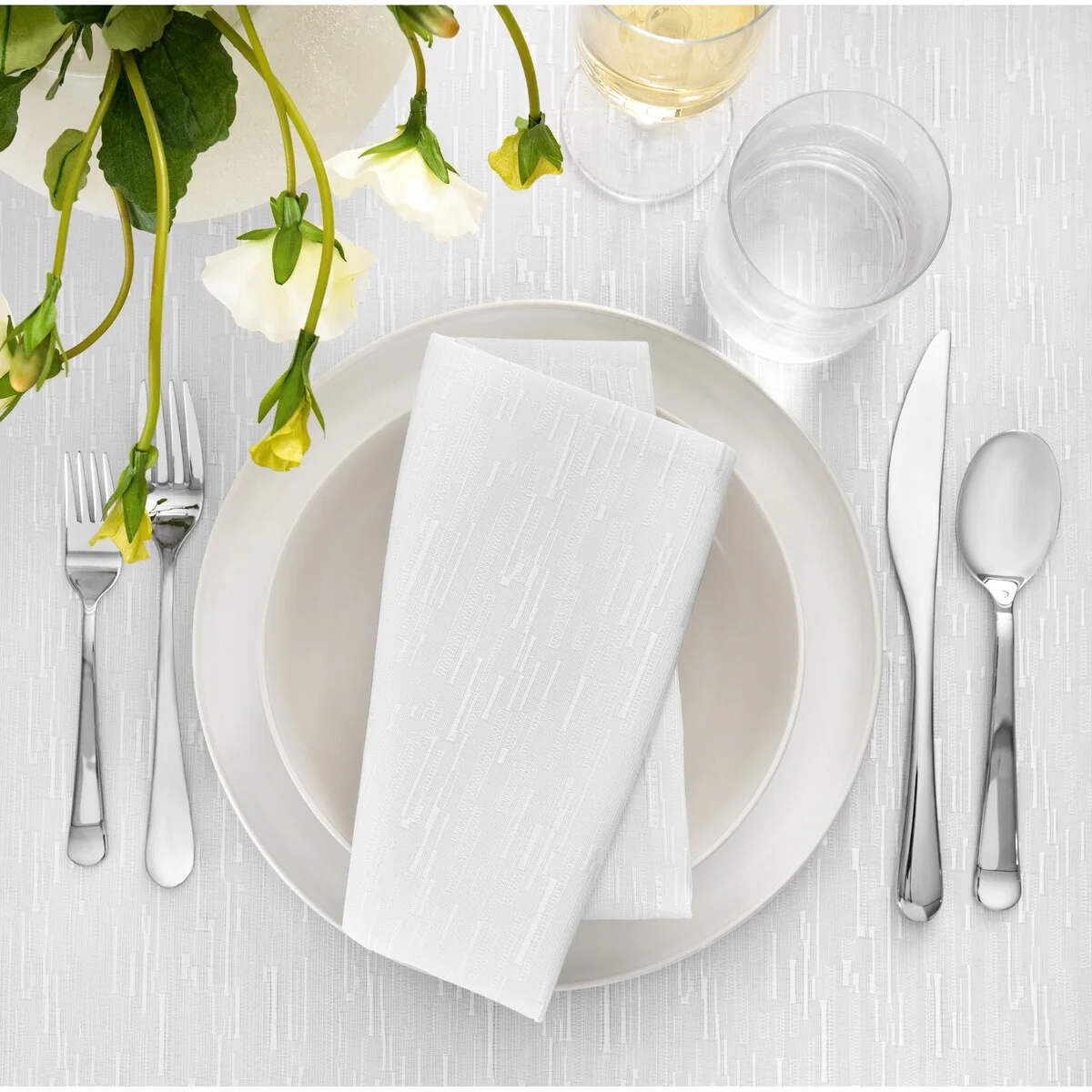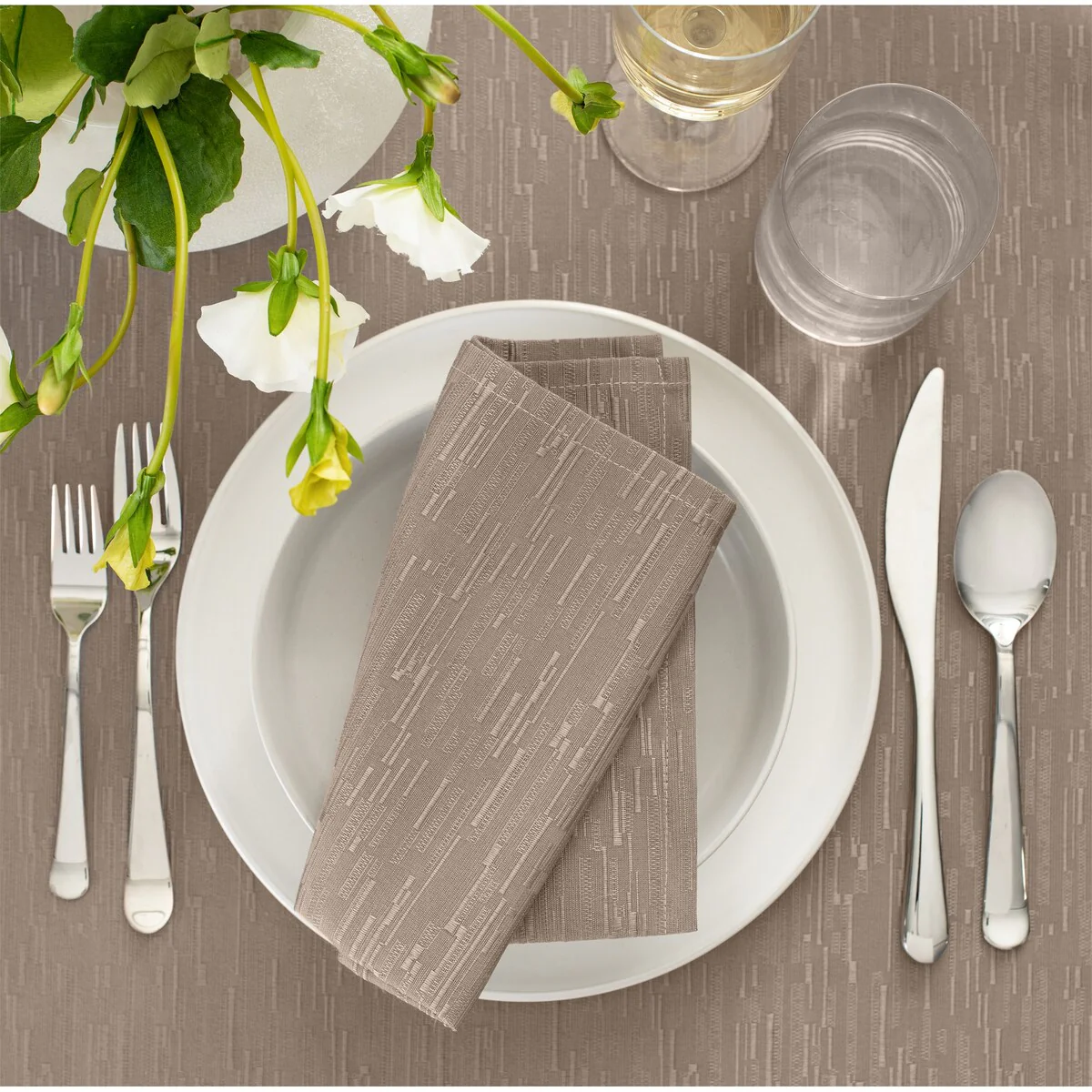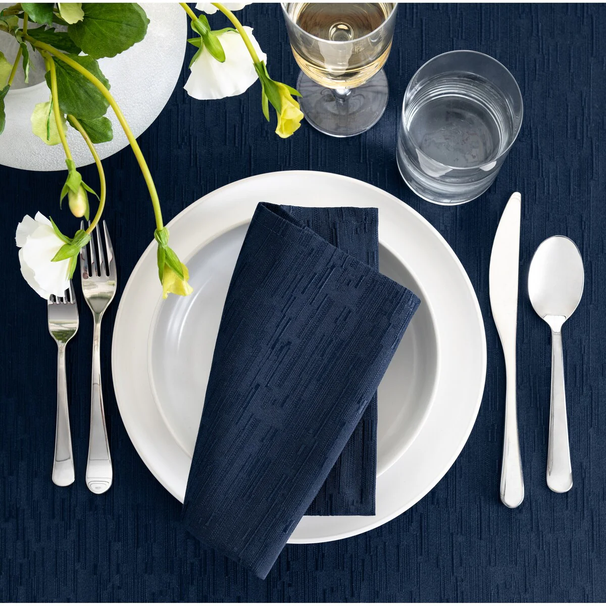 The Continental Solid Napkin Set features a contemporary raised slub texture pattern in a variety of solid colors, ideal for every décor style. The luxe, textured feel and versatile styling potential make our Continental napkins a perfect accent to any tablescape, whether it's a casual brunch, seasonal gatherings or a formal holiday event. Made from high quality polyester, our heavyweight fabric features a water-repellent, stain-resistant and fade-resistant finish to ensure your table will be protected from scratches and accidental stains and spills. Fabric easily wipes clean with a damp cloth or sponge. The designer quality hemmed edges add a tailored, finished look to modern and traditional table settings while preventing wear and tear. Napkins are sold as a set of four, measuring 17 inches by 17 inches. 100% Polyester. Easy care - machine washable, and dryer safe for effortless upkeep. Designed to coordinate beautifully with a wide range of dinnerware collections. For a complete look, pair your cloth napkins with our matching Continental Solid tablecloth.