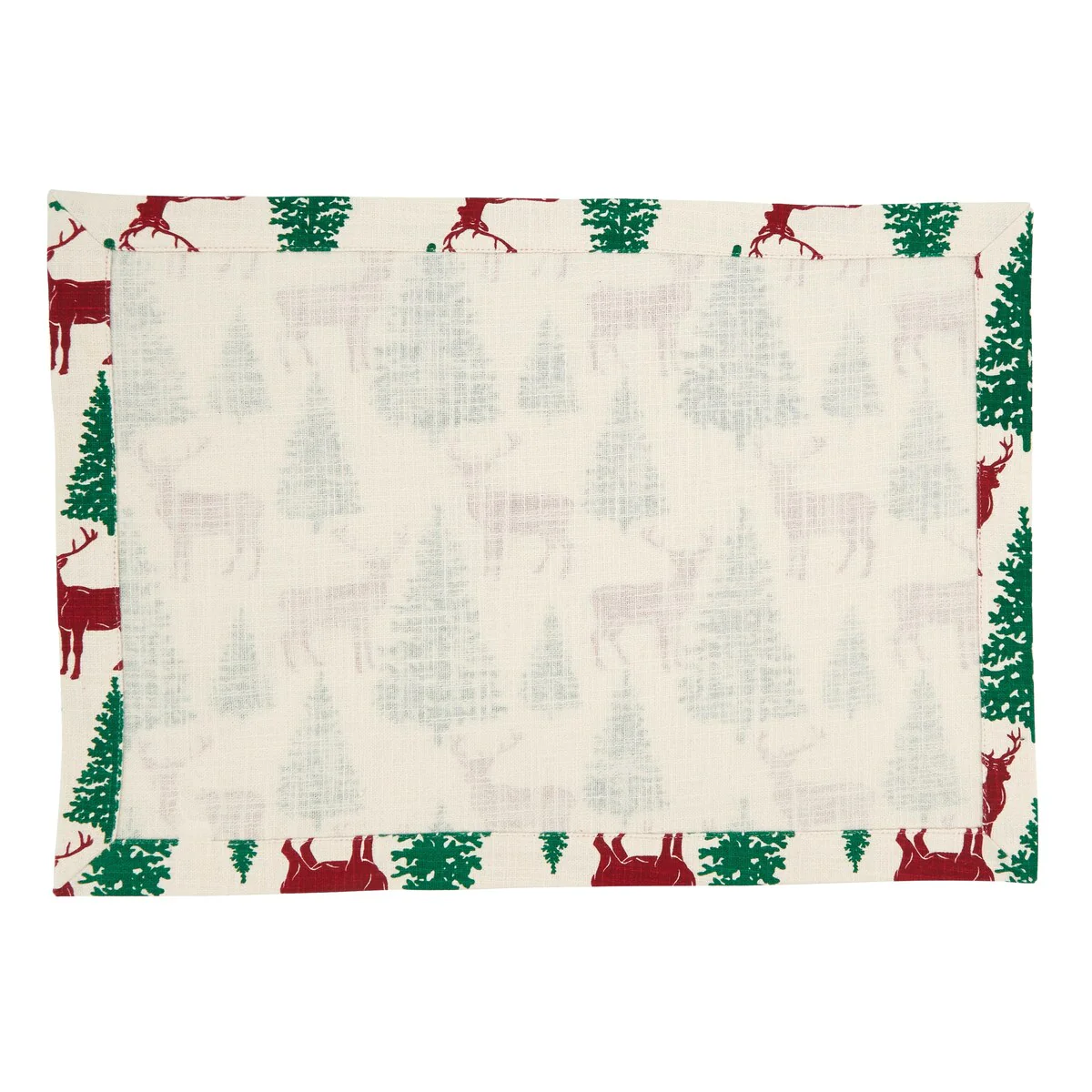 This charming set of Deer and Christmas Tree Placemats helps you add a seasonal touch to your home décor. The festive placemats bring a beautiful splash of color to your tabletop, with a design that features rich shades of traditional red and green. They add a whimsical accent to each place setting.