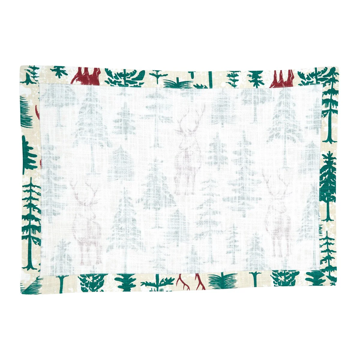 Add Winter's magical touch to your table décor with this lovely set of Deer and Trees Design Placemats. Featuring traditional shades of red and green, these holiday placemats bring a beautiful splash of color to your tabletop for the perfect foundation to create a gorgeous place setting. Pair them with a matching runner for a coordinated look.