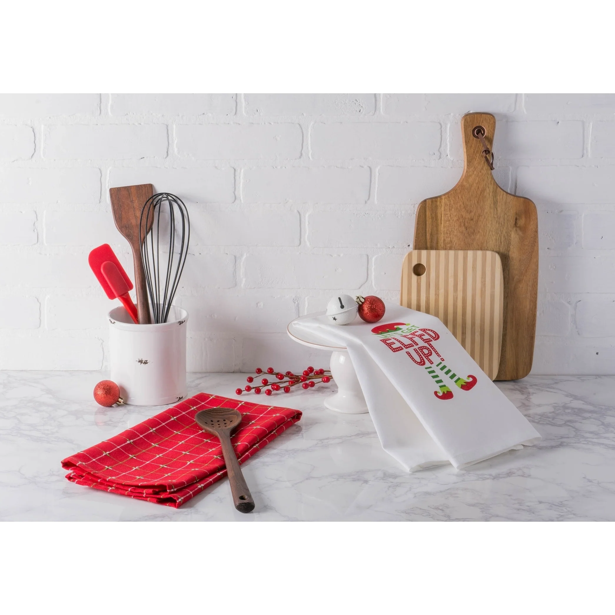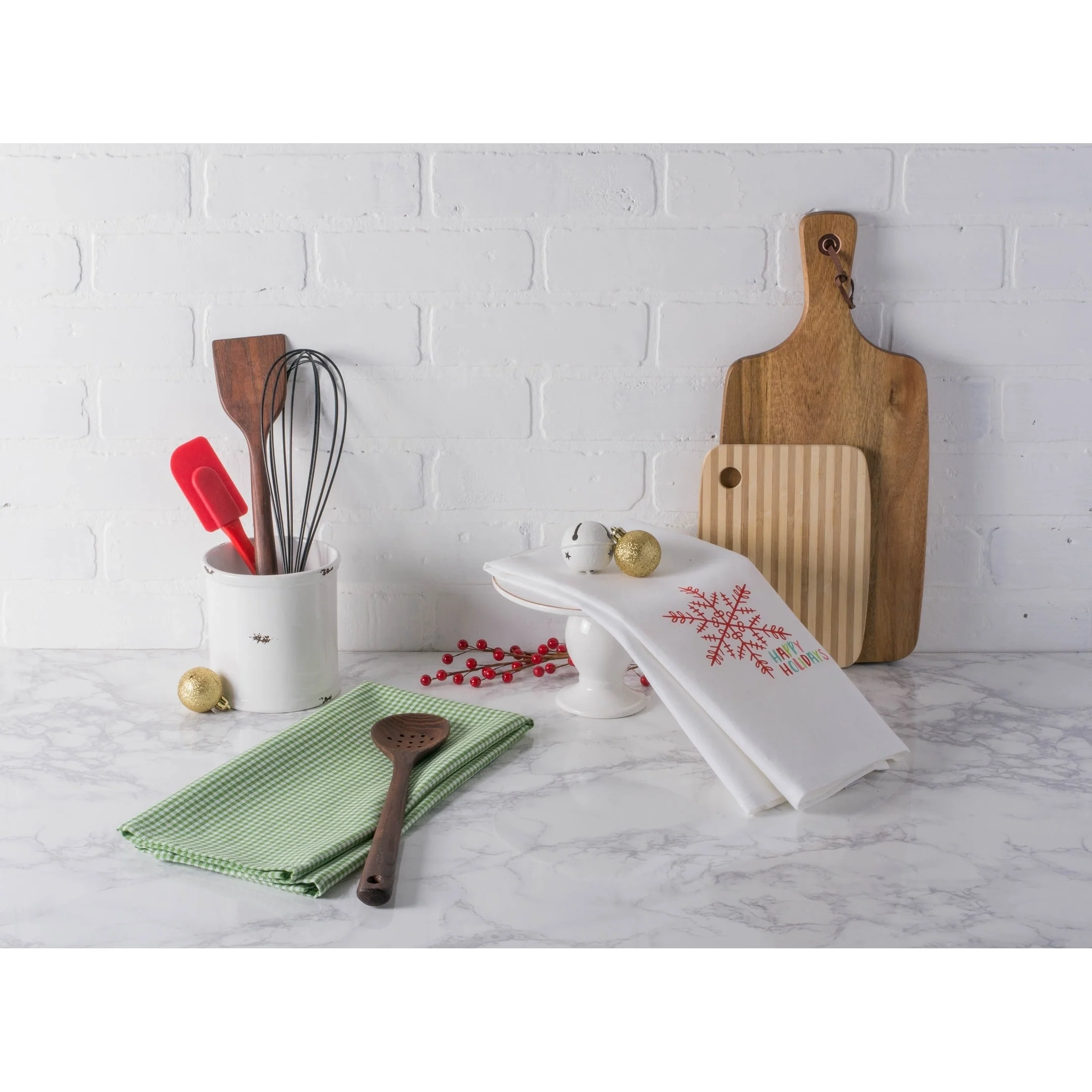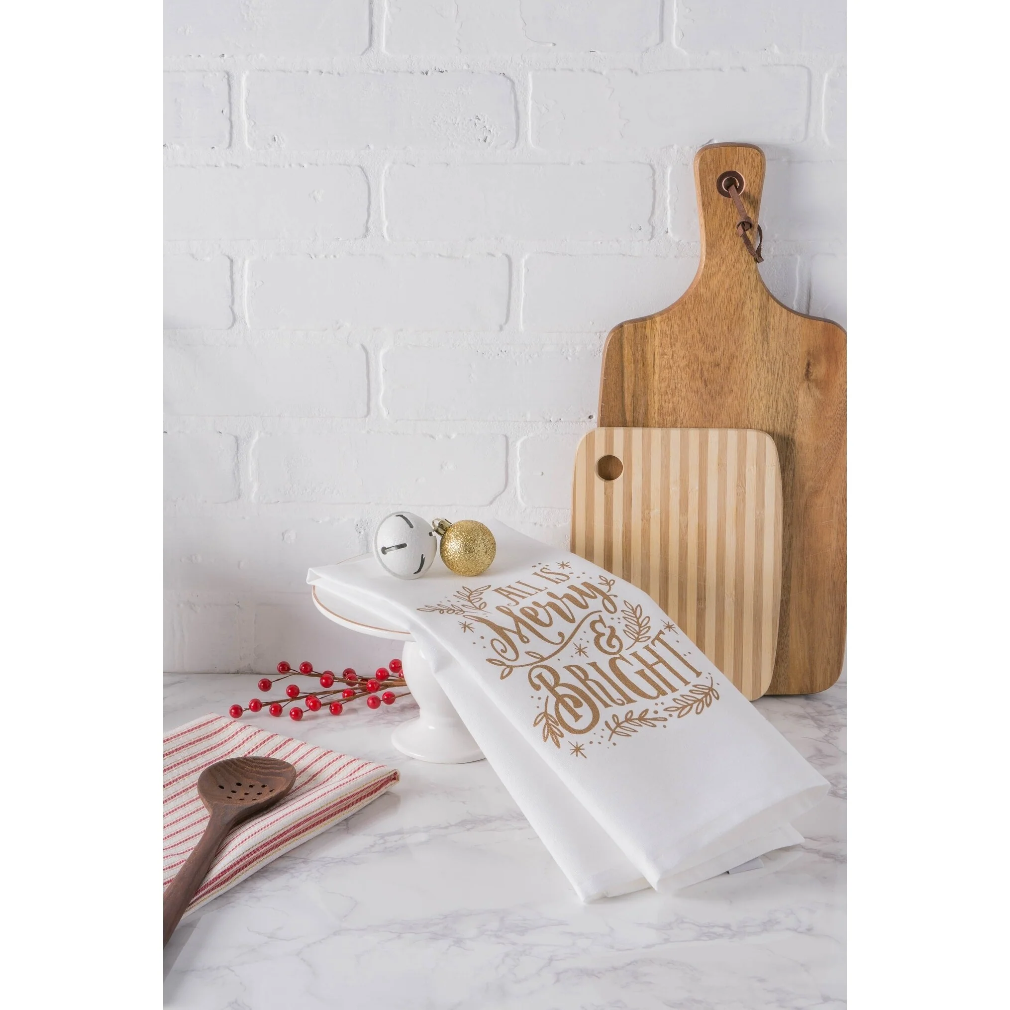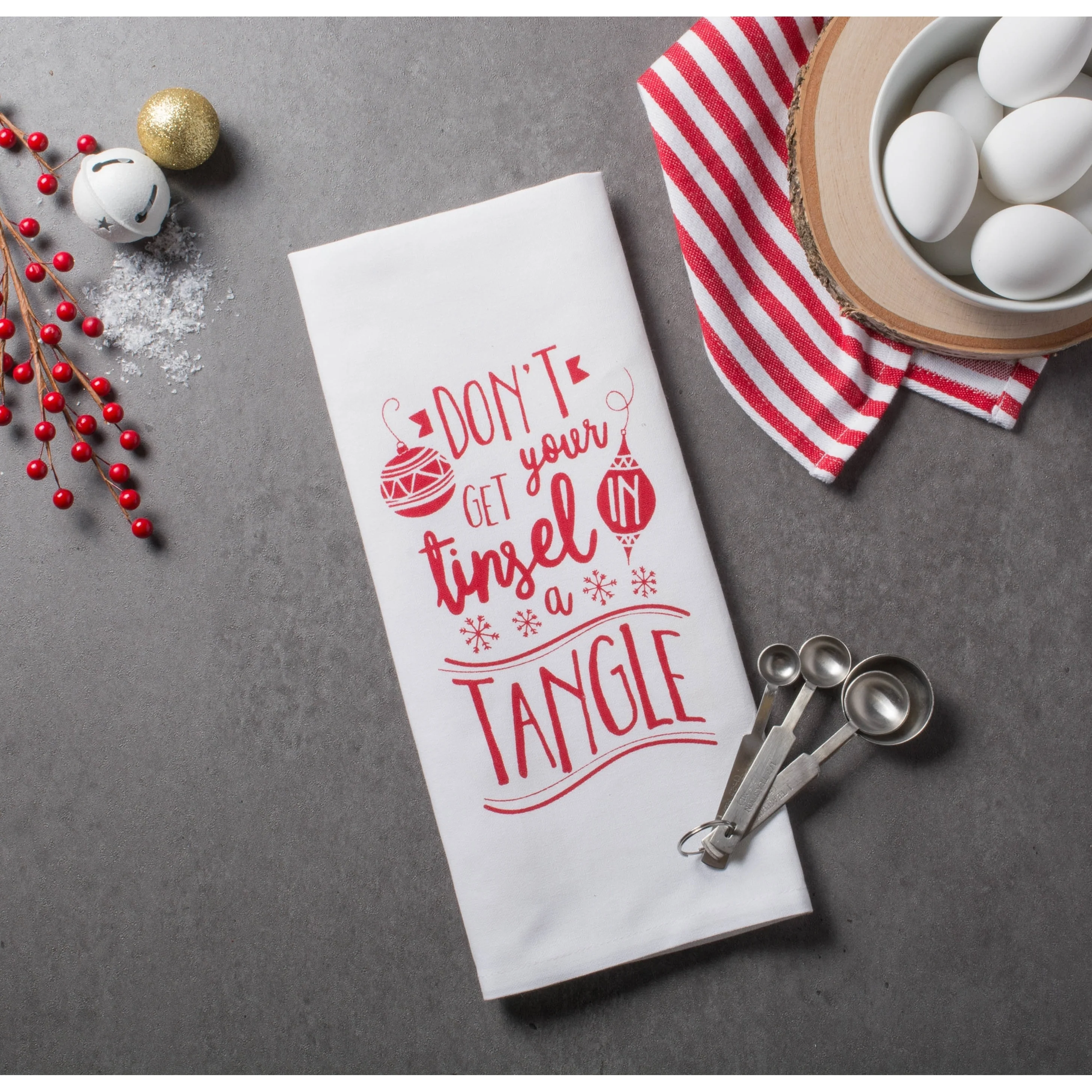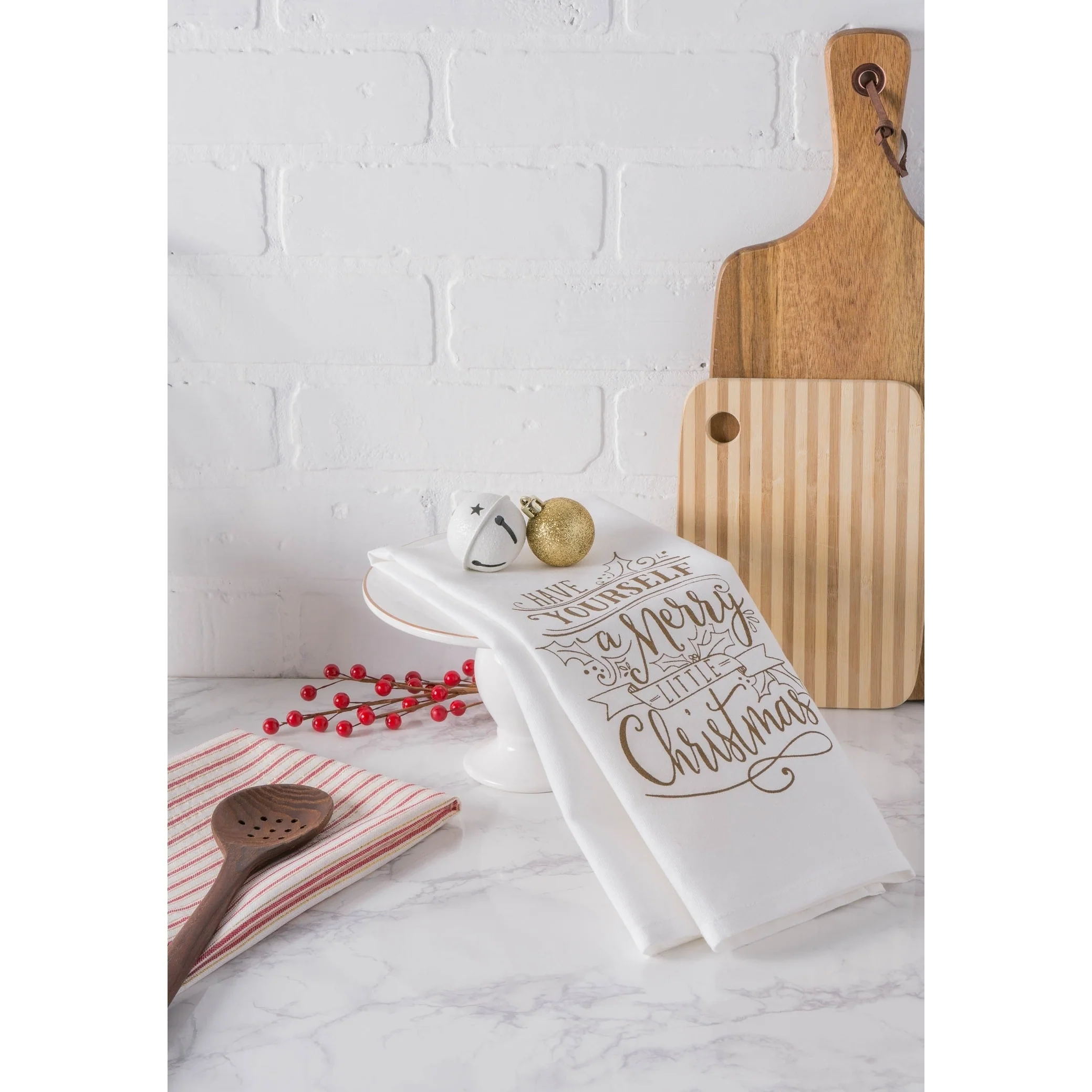 Get Ready for a Holiday Feast and Tackle Kitchen Works with DII Holiday Dish Towels DII Holiday Dish Towels are must-own kitchen essentials for every household. Dish Towels come tied in a set of 3 or set of 2 and have a festive design which makes them perfect not only for holiday but also for everyday use. These dish towels are functional and decorative, own a set to help you put up a Holiday joyful atmosphere in your kitchen DII's holiday dish towels are strongly constructed which makes them a long-lasting every day essentials. Our holiday dish towels are perfect to give as a gift or keep for yourself. DII Holiday Dish Towels comes in varies designs coordinate well with our Apron, simply search DII Holiday Dish towels you'll find different collections, own them right now! Great kitchen Essential for Ever day Use DII 100% Cotton Dish Towels are ultra-absorbent, durable and handy for mopping up in the kitchen or anywhere else a spill may occur. Fast drying towels produce minimal lint and are great for drying dishes and glasses, as well as for general kitchen duty. With each wash, these towels become more absorbent, helping to clean up even the biggest. These dish cloths coordinates with most kitchen decor, makes a great basic kitchen essential with multiple colors for your choices to mix and match with your home and kitchen. Quality you can rely on DII dishtowels are made with high quality 100% cotton with tight knit allow for less lint on your glass or plates. The perfect dishtowel for your daily kitchen use for holding up to your tough kitchen grease, dirt, food and more. The material and construction provides a long lasting dish towels/dish cloths that you can use over and over again. Washing and Care Instructions: • Wash towels before first use. Towels will lose any lint remaining from the weaving process, and will become softer and more absorbent after washing. • Wash: Use Cold water, Color Separated; DO NOT use bleach • Do not use fabric softner (coats the cotton fibers causing towel to become less absorbent) • Dry towels in Tumble cycle to minimize shrinkage. May be ironed with low heat. We offer so many options. To view our entire selection of options search: "DII for the Home". Our Dish Towels/Dish Cloths Products Include: • Barmop Dish Towels/Dish Cloths • Printed and Embroidered Design Dish Towels • French Stripe Dish Towels • Assorted Dish Towels • Gourmet Dish Towels/Dish Cloths • Damask Dish Towels • Zig Zag Weave Dish Towels/Dish Cloths • Holiday Dish Towels/Jacquard Dish towels • Terry Dish Towels/Dish Cloths