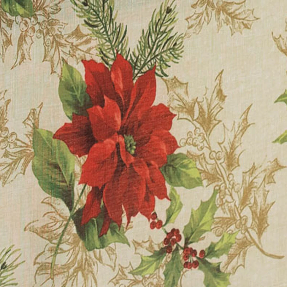 The Holiday Festive Poinsettia printed napkin set is the perfect solution to your seasonal decorating needs. Holiday design fa beautiful design with red poinsettias all over. Excellent for special occasions, events, parties, family gatherings and everyday use during the holiday season. Soft and durable fabric can be ironed to release stubborn creases and make your napkins wrinkle free. Hemmed edge adds a finished look and prevents wear and tear. Napkins measure 17x17 and come as a set of 4. 100% Polyester. Easy care, machine washable. Coordinate to the Holiday Festive Poinsettia tablecloth to complete your look!