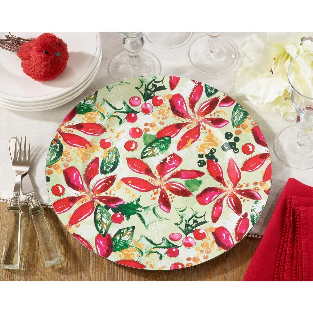 Holiday Table Chargers With Wild Poinsettia Pattern (Set of 4)