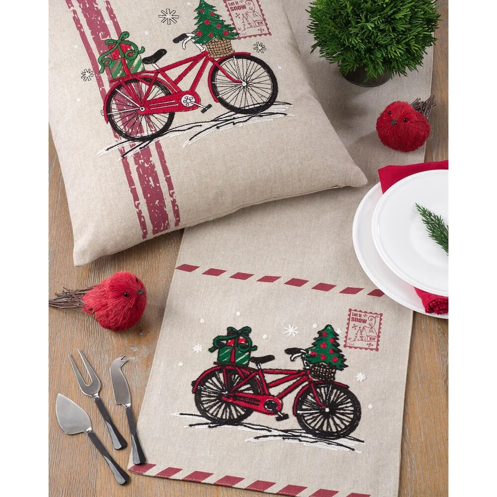 - Give Christmas décor a twist this year with this holiday bicycle table runner.
