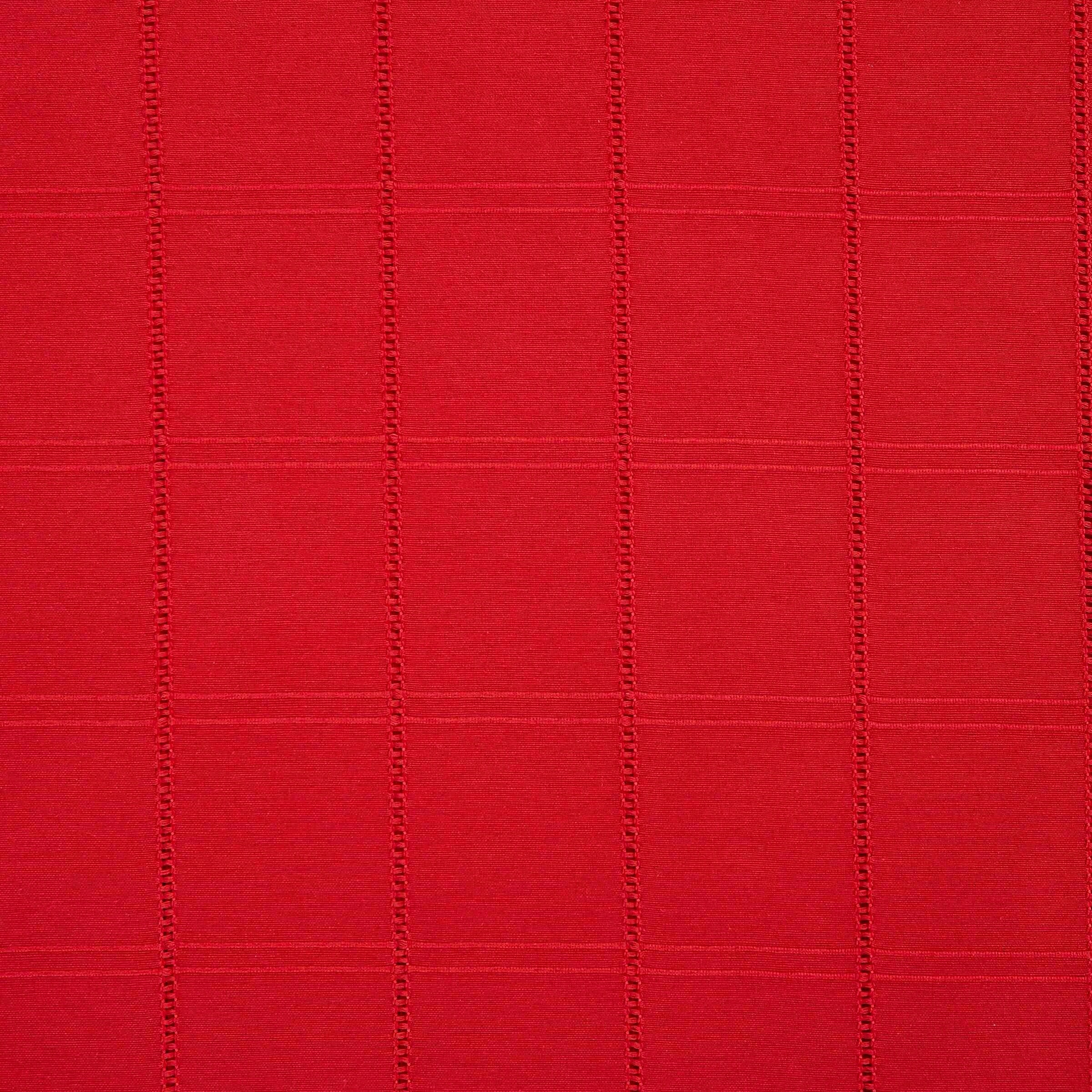 The Izod Chadwick Red 60" x 84" Tablecloth features a textured woven windowpane design. The windowpane is made up of 3" squares bordered with double-woven rows and hem-stitched lines. Made of 55% cotton/45% polyester for soft feel and easy care, machine washable.