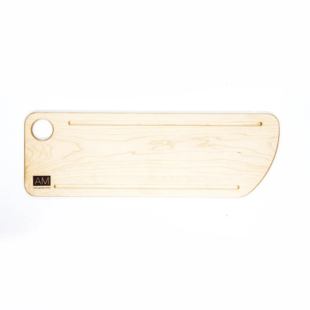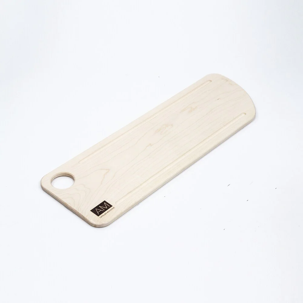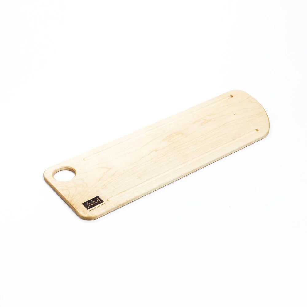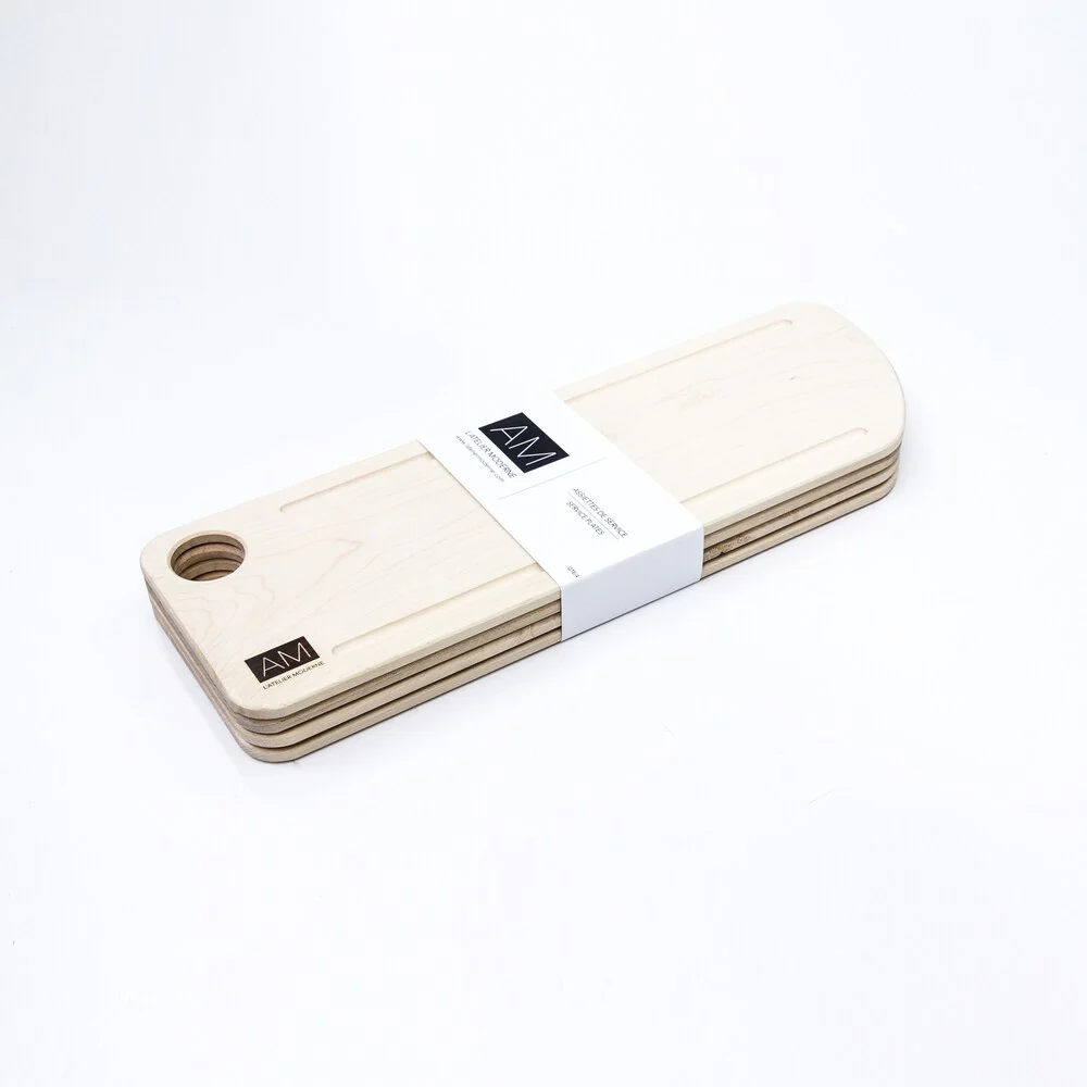So we took the design of our artisanal 11x20 Maple Wood Cutting Board and made it available as 6x18 serving plates in sets of four.