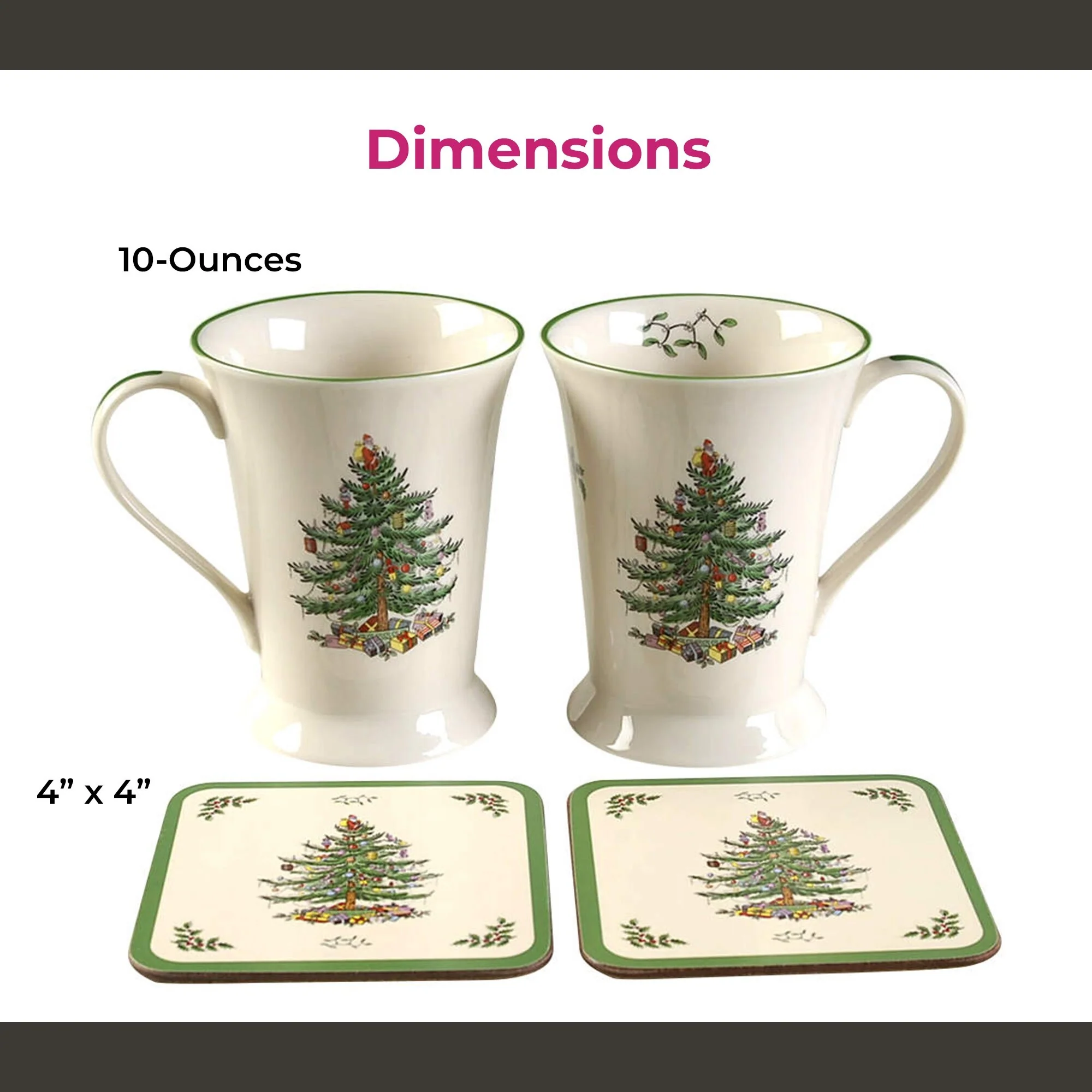 Pimpernel Christmas Tree 10 oz Mug & Coaster Set (4-Piece) -Unique Mug with Coaster for Tea, Coffee, Hot Chocolate - Durabe Melamine, Dishwasher & Microwave Safe - Mug & Coaster Gift Set - New