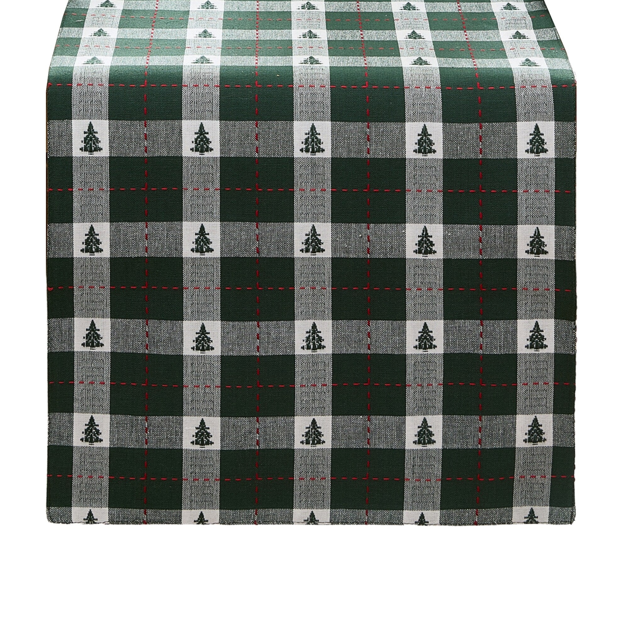 - Plaid and Pine Design:� With a delightful plaid and pine tree pattern, our woven table runner is available in two colorways, featuring classic colors like Christmas red, hunter green and off-white.