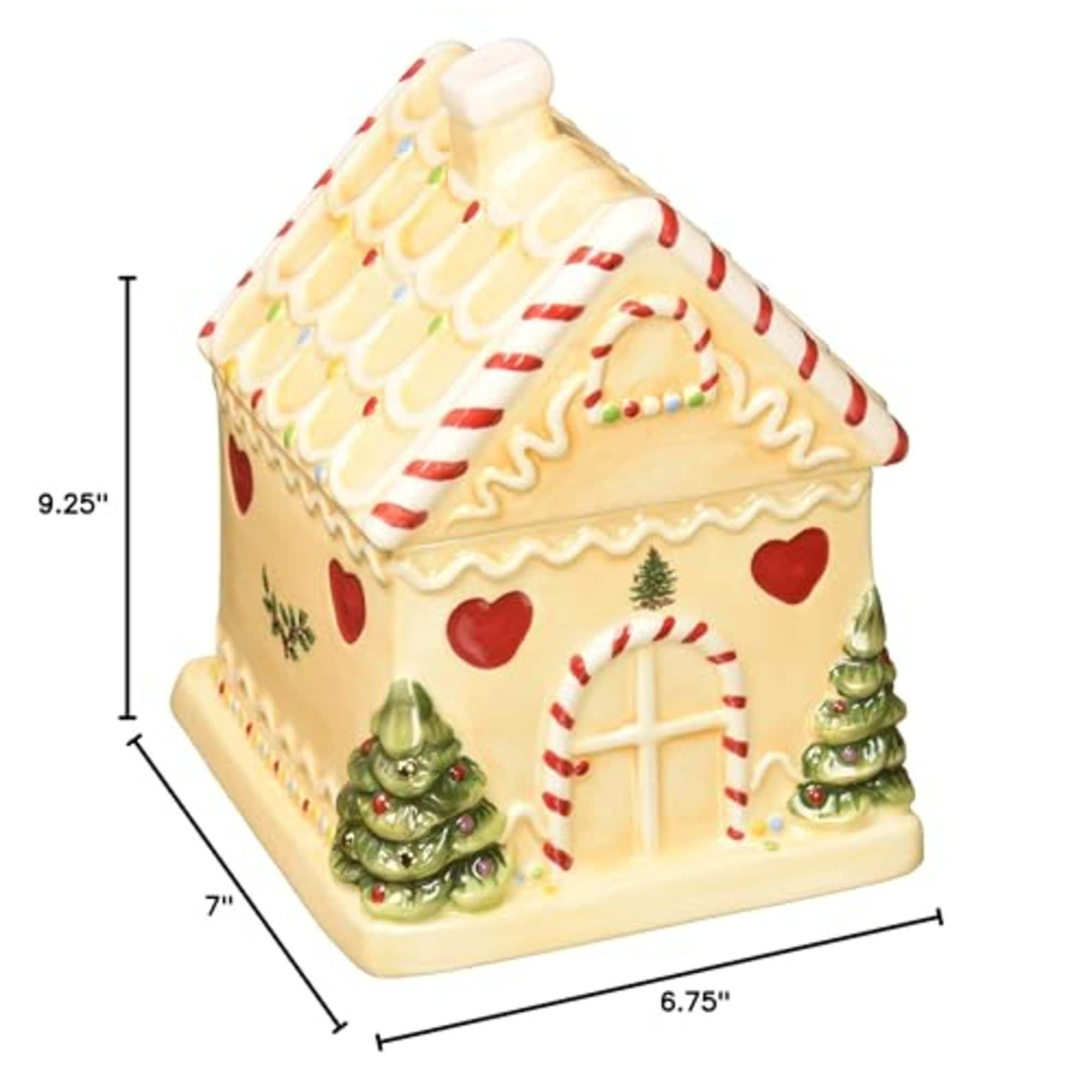 Spode Christmas Tree Gingerbread House Candy Jar - 7-Inch Christmas Cookie Jar in Fine Earthenware - Decorative Candy Storage Jar with Lid for Holiday Kitchen Counter, Cookies, and Treats - New