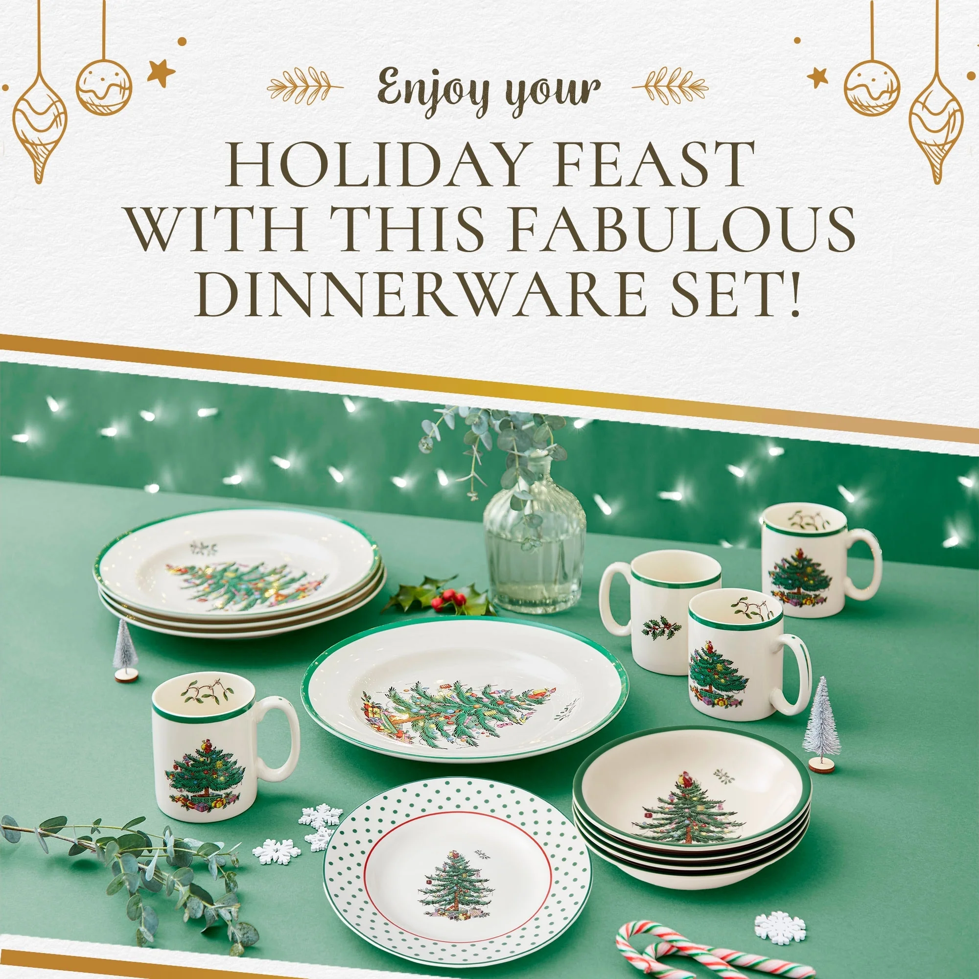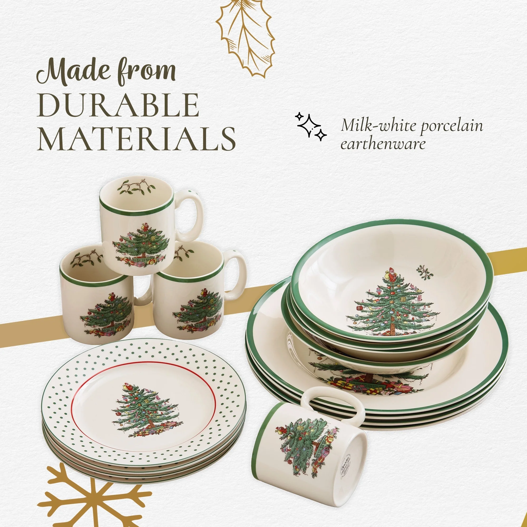 - Porcelain Material: Crafted from durable porcelain, this holiday dinnerware set offers exceptional strength and resilience. The porcelain construction ensures that the dish retains its beauty and functionality for many years. It is designed to withstand everyday use while maintaining its elegant appearance.