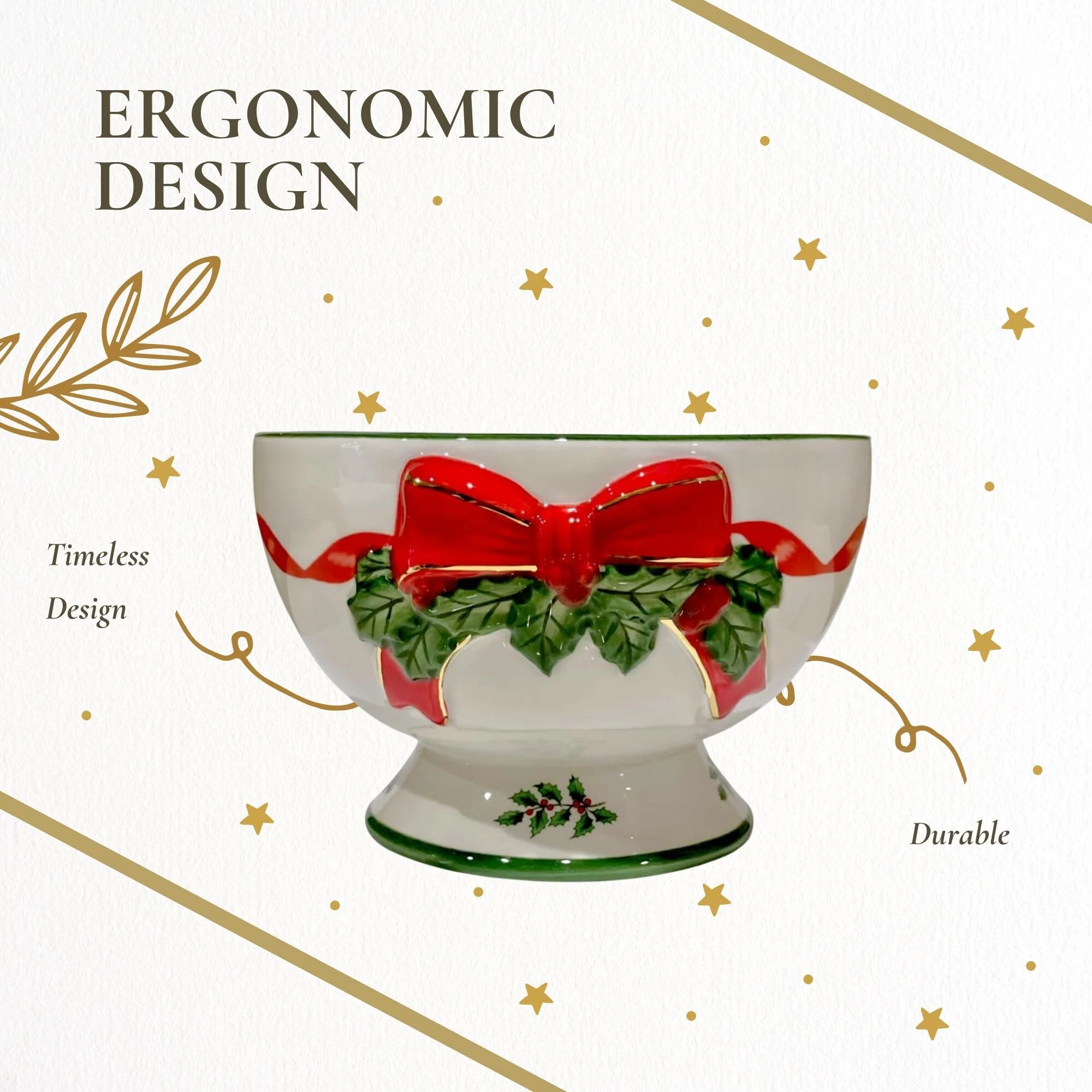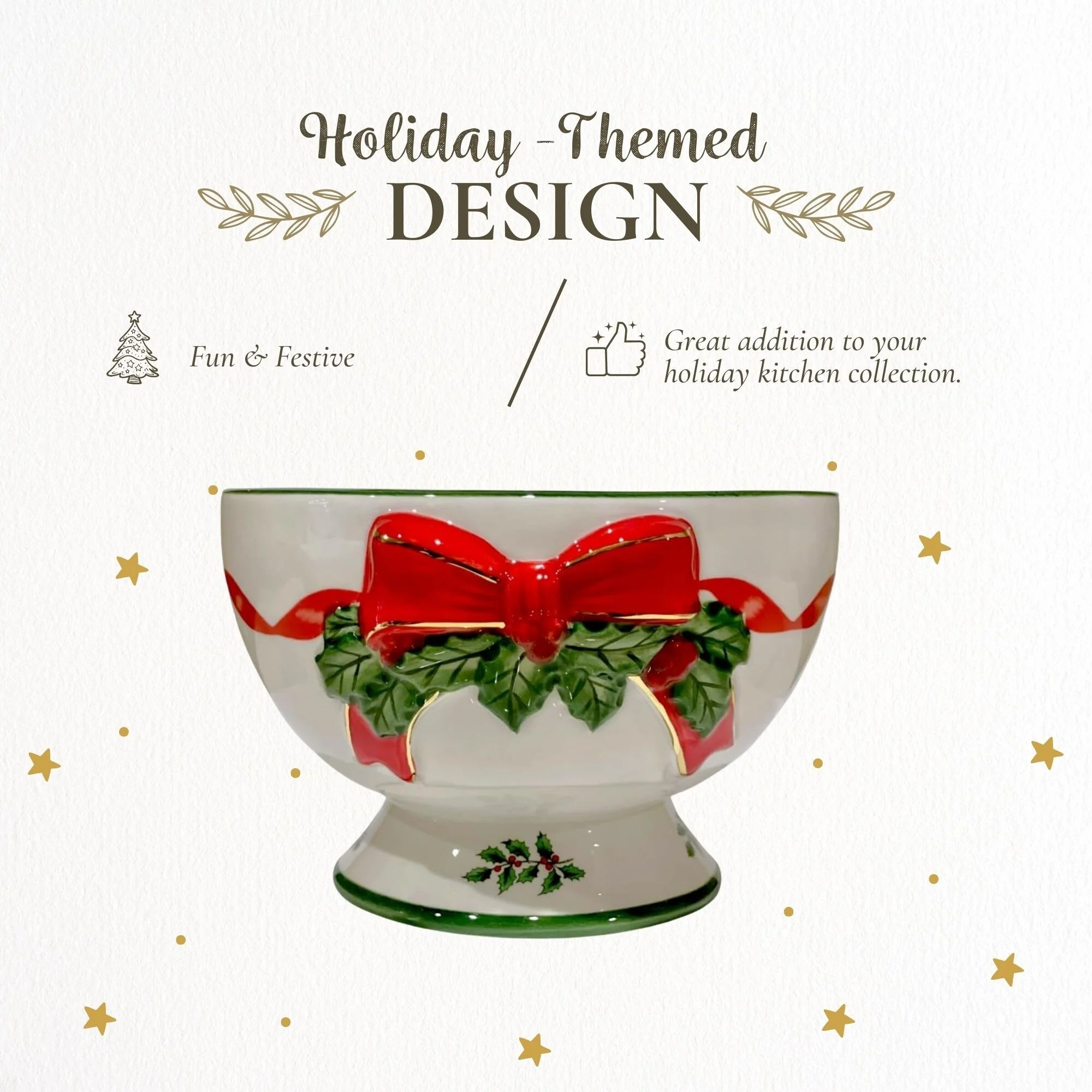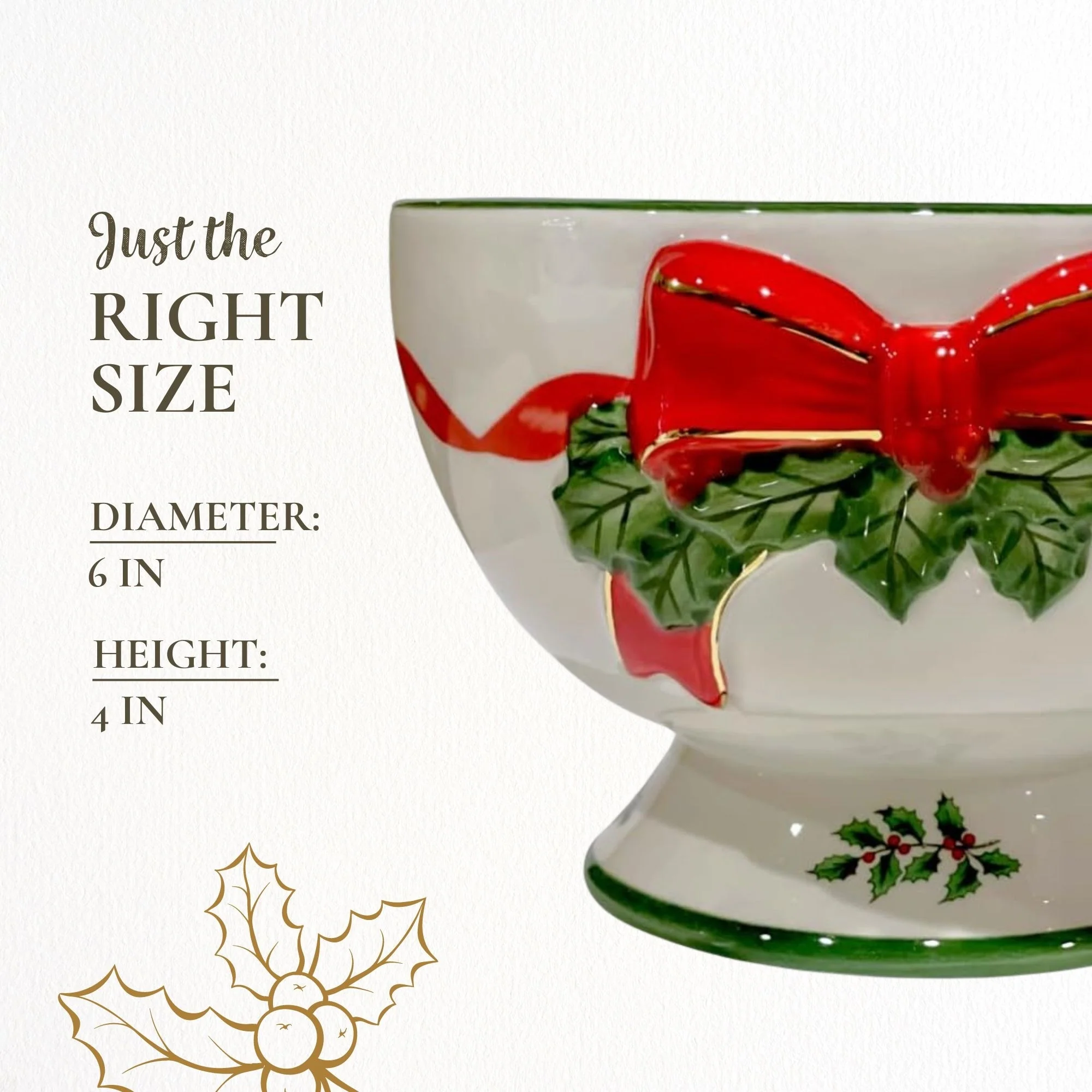 - Designed for Longevity: This bowl is handwash only, ensuring its beauty and quality are preserved for many festive seasons. Its sturdy construction makes it a valuable addition to your festive dinnerware collection, ready to be enjoyed year after year.
