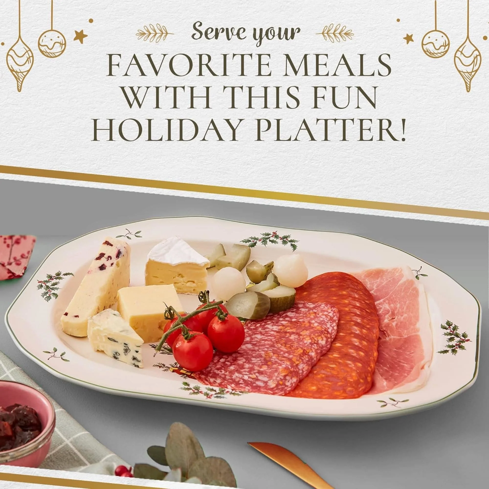 - Large Size for Festive Feasts: With its generous 19" x 16" dimensions, this holiday serving platter is ideal for serving a variety of dishes, from roasted meats to side dishes and desserts, making it the perfect companion for any festive feast.