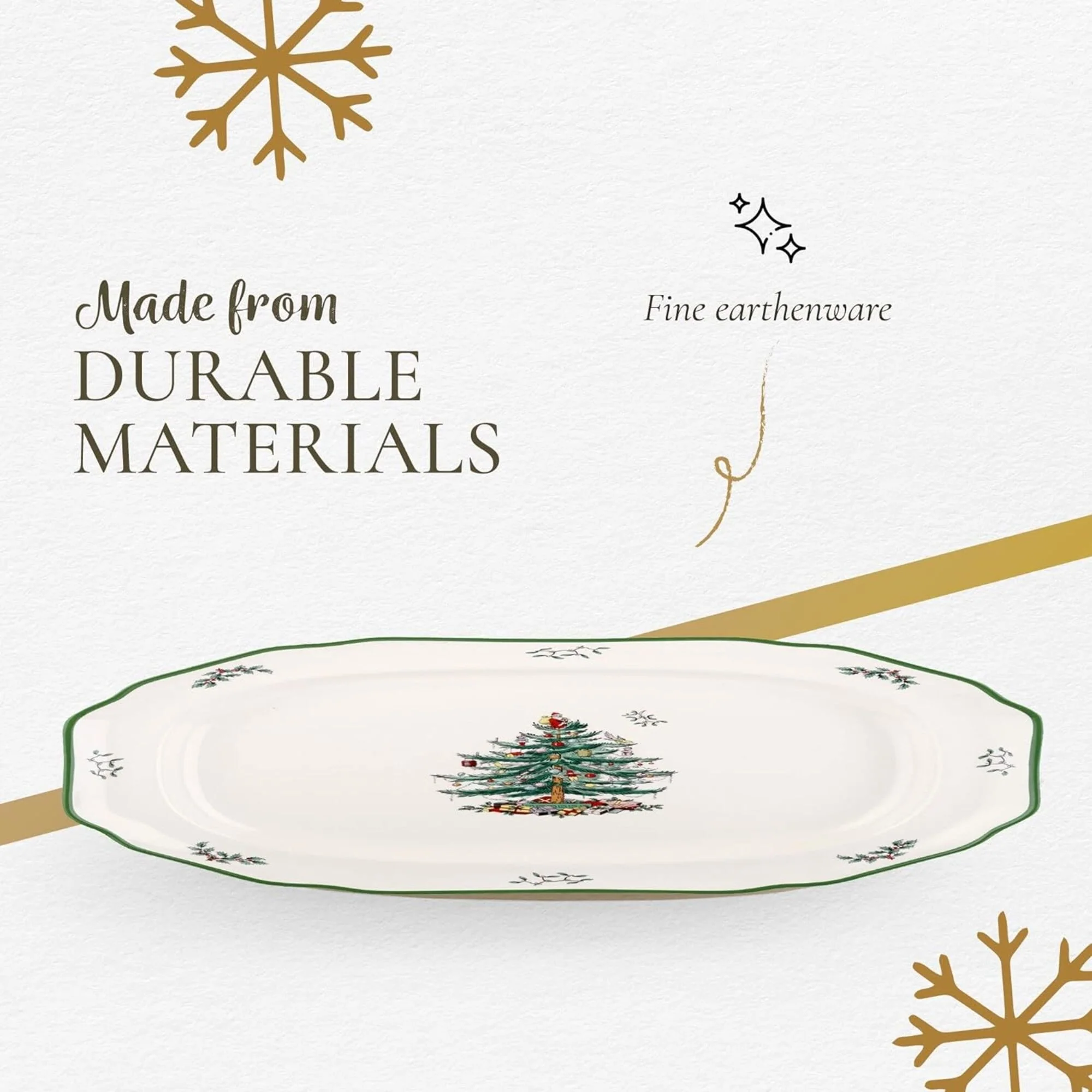 Spode Christmas Tree 19" Serving Platter - Porcelain Holiday Serving Tray for Entertaining - Dishwasher & Microwave Safe - Classic Christmas Tableware for Serving Festive Dishes - New