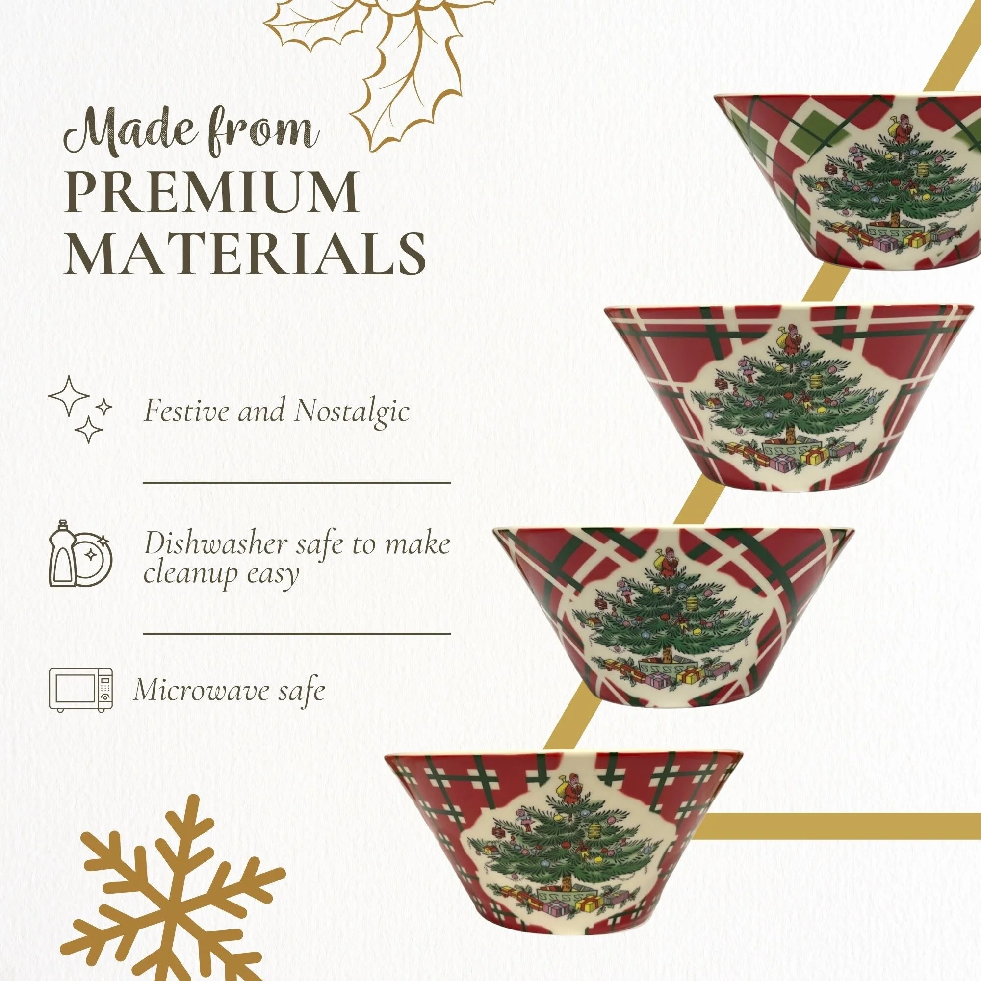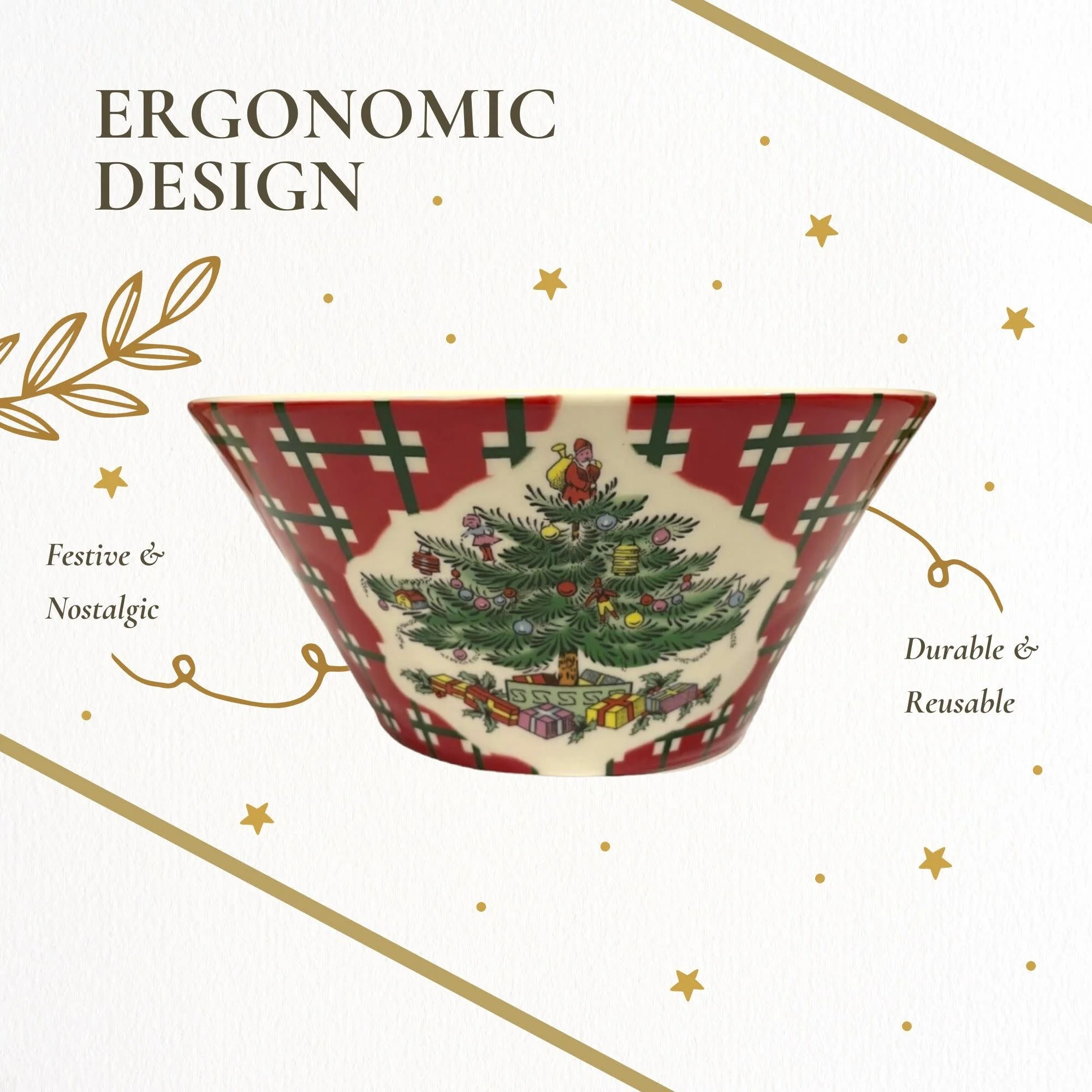 - Charming design: Adorned with a festive pattern, these bowls are great for holiday gatherings. The elegant design adds a touch of holiday cheer to your table setting, making every meal feel special and festive, enhancing the overall dining experience.