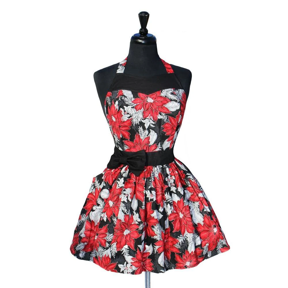 Tis the Season to be Merry with gorgeous holiday floral prints, perfect for entertaining, bridal parties, birthday and hostess gifts. Fit and flare skirt construction hugs at the waist with a classic bow belt. Silhouette cut and designed in retro fashion, Sugar Baby Aprons bring back vintage style for fun and flirty baking in the kitchen. Constructed with durable, 100% cotton fashion fabrics. Form-fitting apron is constructed in silhouette-style for a form-fitting look that ties at the neck and waist. One size fits most.