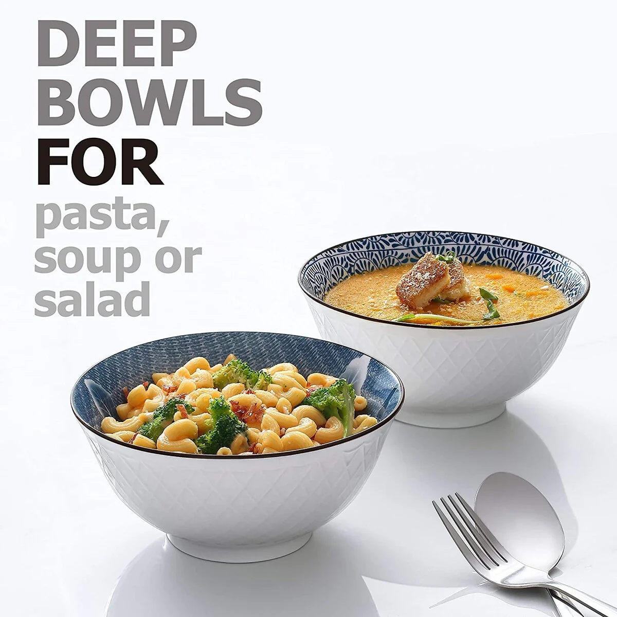 - Practical Deep Bowls: 24 oz, suitable for breakfast cereal, soup, salad, stew, pasta, snack, rice with some toppings. These ceramic bowls are quite deep and easy to hold. Suitable for a variety of parties, family dinner, restaurant service, party sauce.