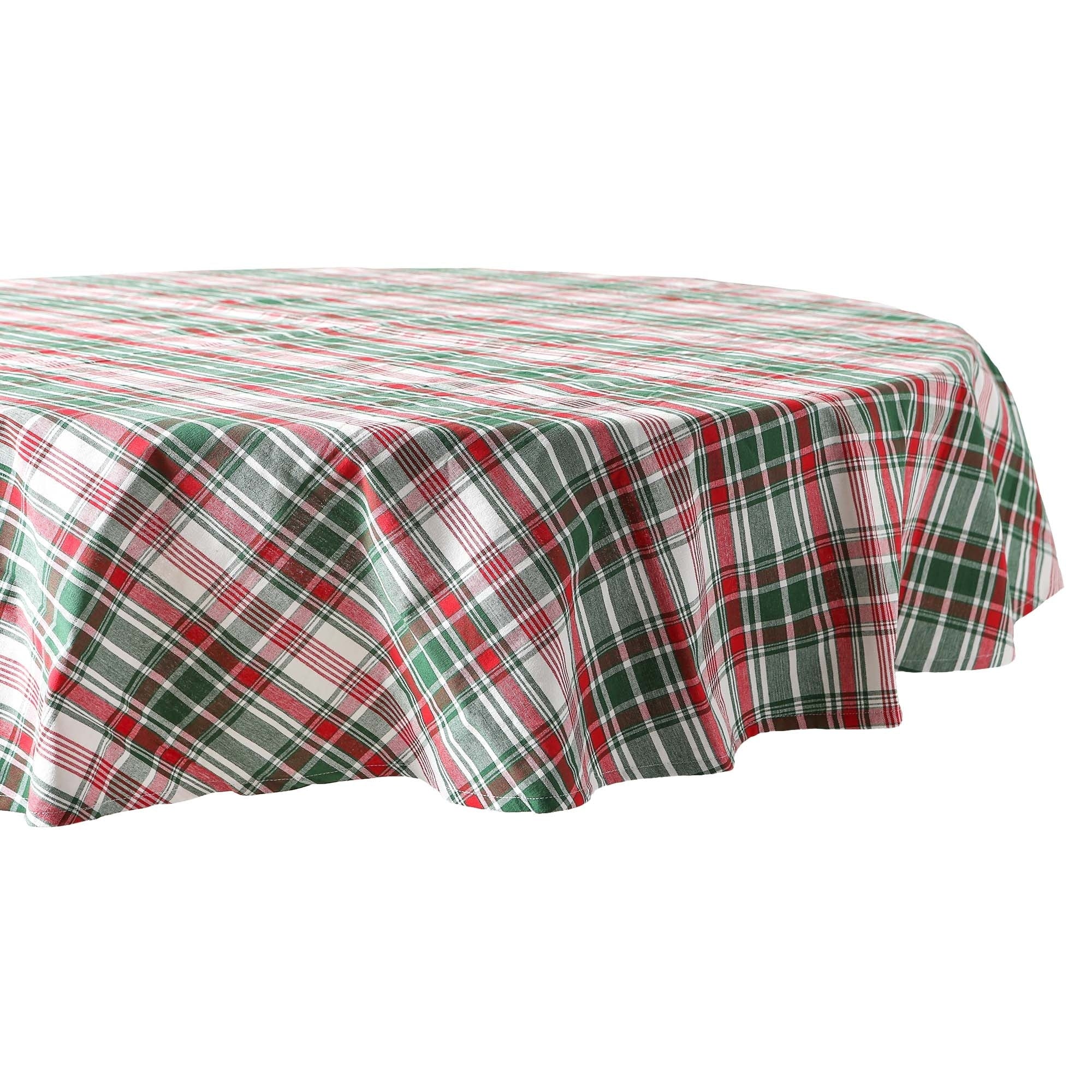 Yuletide Plaid Christmas Round Cotton Tablecloth - 5.75' - Red and Green